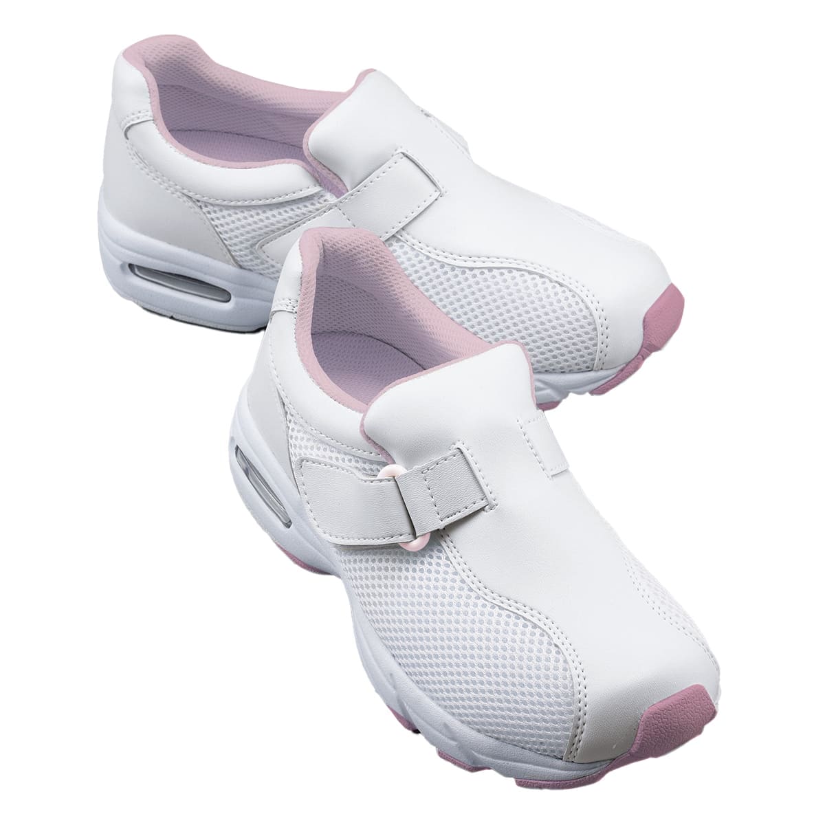 歩きやすさを追求したスポーツタイプで、しなやかな足運びをサポートしてくれるので疲れを軽減してくれる、一日中履いていても快適なシューズです。エアークッション内蔵で取り外せるカップインソールは足を守る衝撃吸収材入り。通気性の高いメッシュ加工でムレにくく、暑い夏でも安心。足の甲がぐにやぐにゃと曲がるのでどんな体勢も優しくカバーしてくれるナースシューズです。