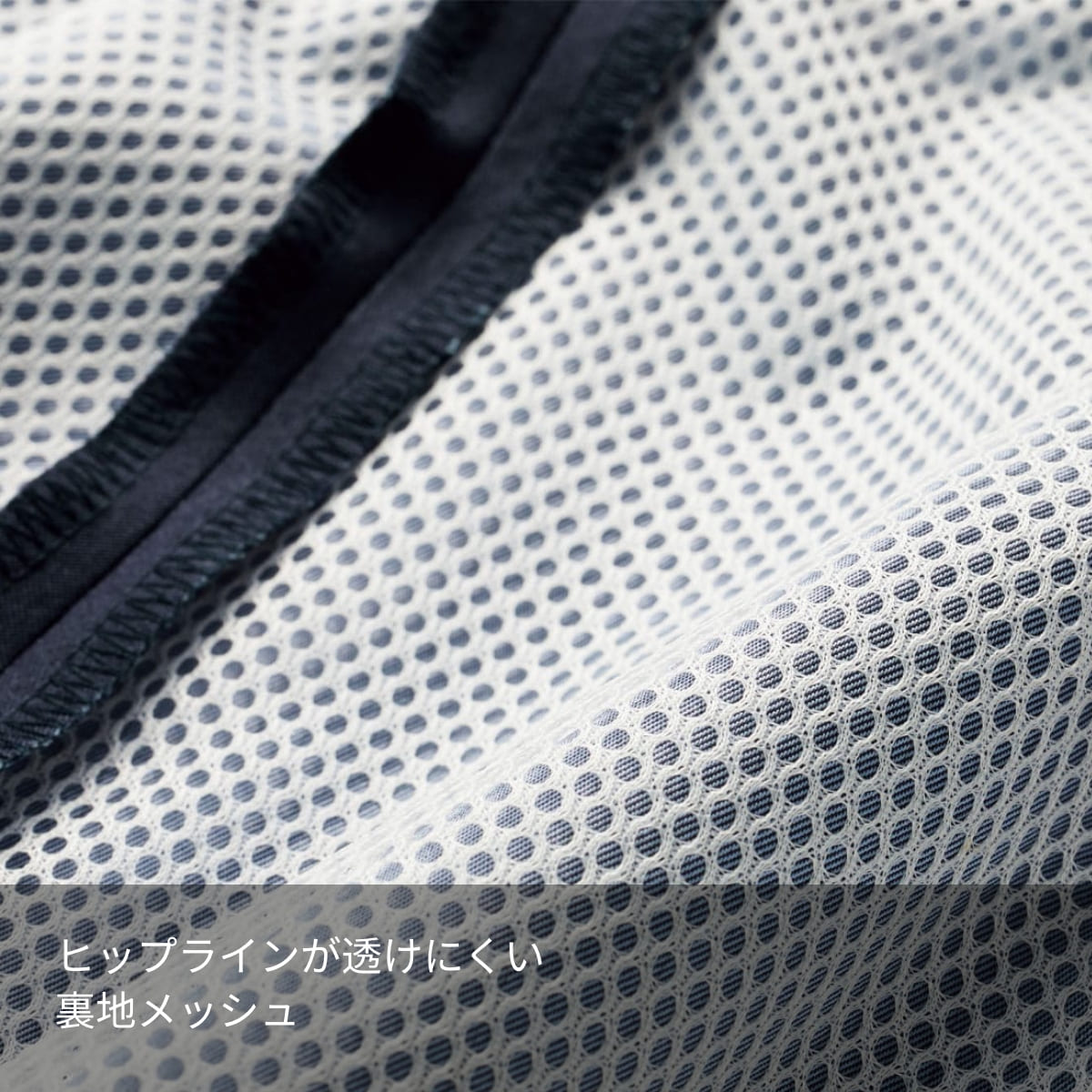 仕様:脇ゴム/両脇ポケット/前ファスナー/後ろ側裏地メッシュ