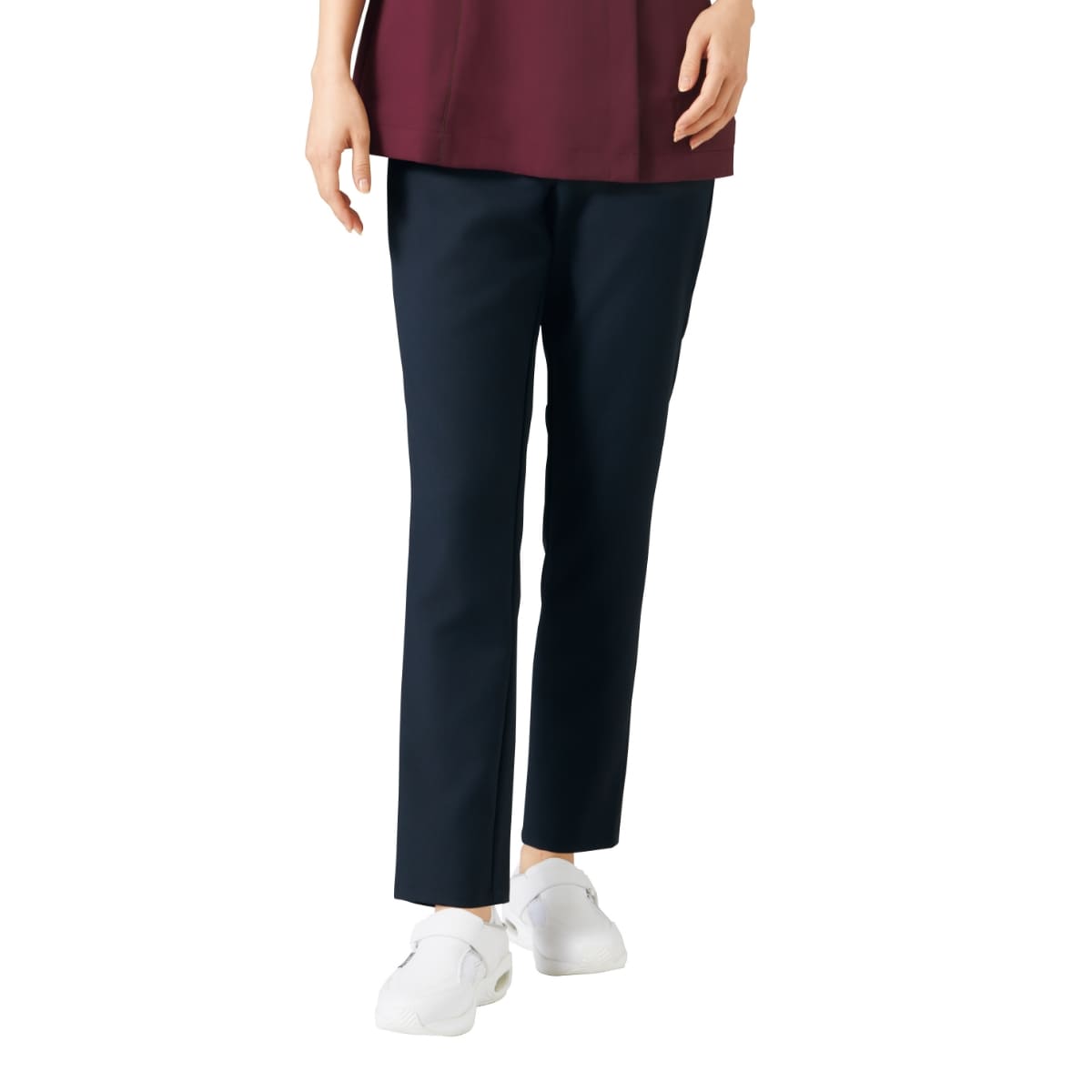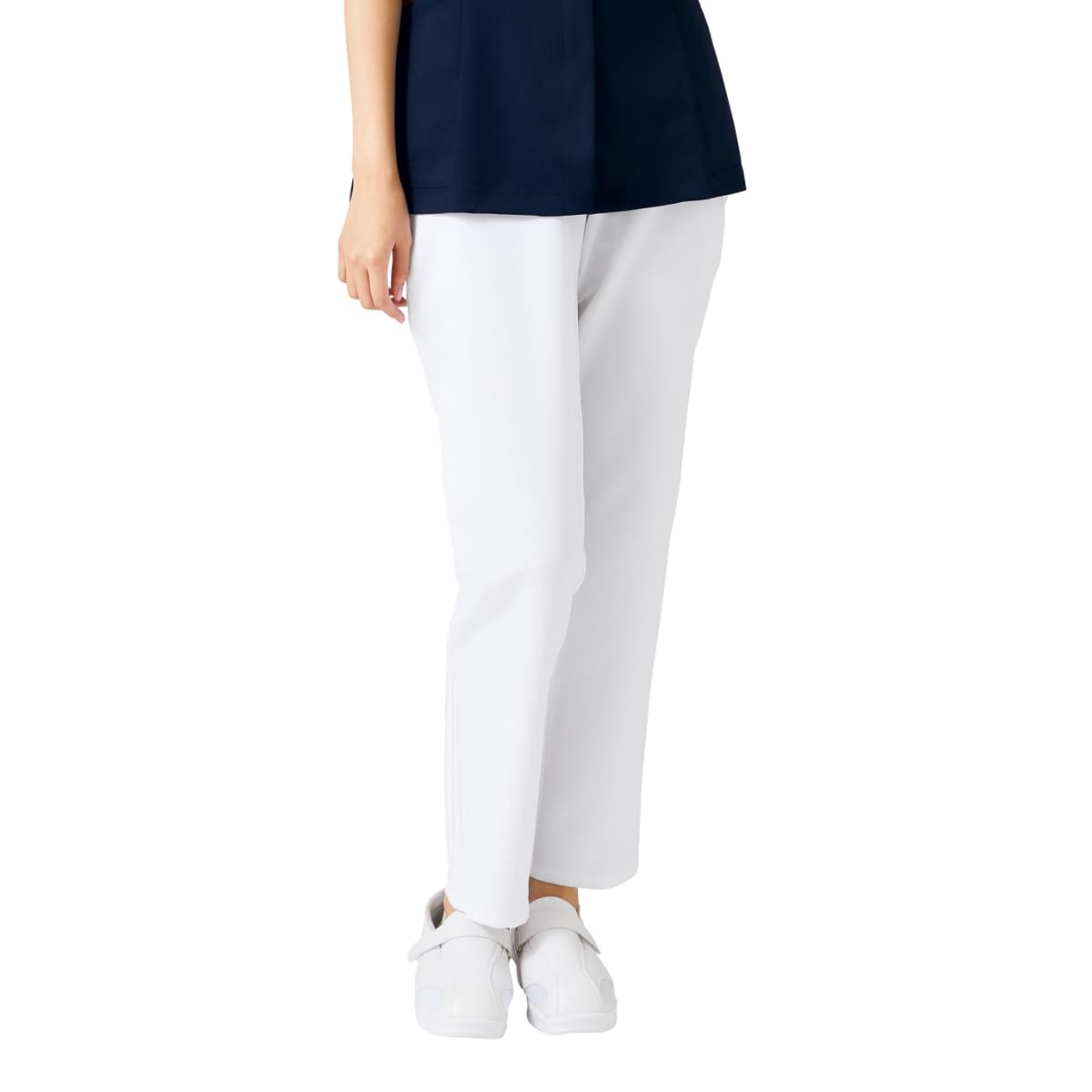 ストレッチの効いた素材と脇ゴム仕様で、動きやすく快適です。ヒップ部分にはメッシュ裏地を施し、下着のラインのあたり軽減と、パンツ内の蒸れの軽減。ホワイトは下着の透けを防止するため、ベージュの裏地を採用しました。さまざまなスクラブやチュニックとコーディネートしやすいカラー展開で幅広い職種の方が着用可能。美しいシルエットと快適な履き心地が魅力のレディーススリムストレートパンツです。