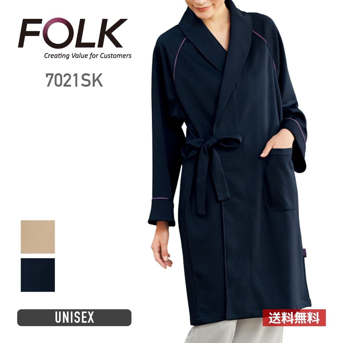 ガウン 検診衣 患者衣 検査衣 検診着 入院 パジャマ フォーク FOLK ユニセックス 男女兼用 メンズ レディース 男性 女性 4段スムース ポリエステル 長袖 医療 介護 福祉 施設 検診 検査 診察 人間ドック 身体測定 健康診断 病院 クリニック 患者 整体 整骨 エステ ケア メディカル