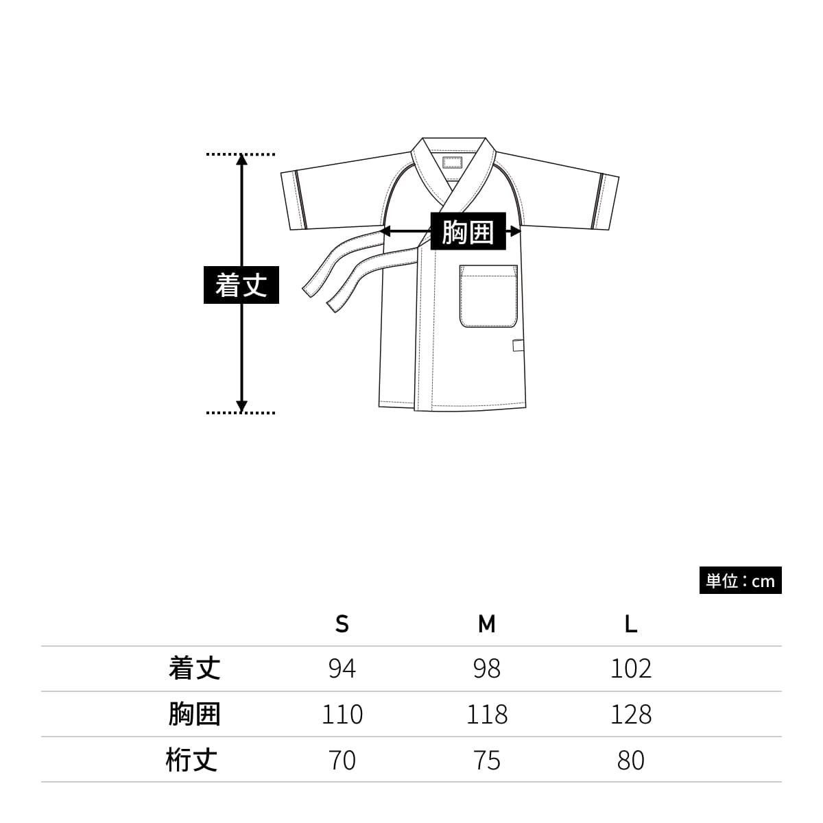 | 裄丈 | 70 | 75 | 80 |