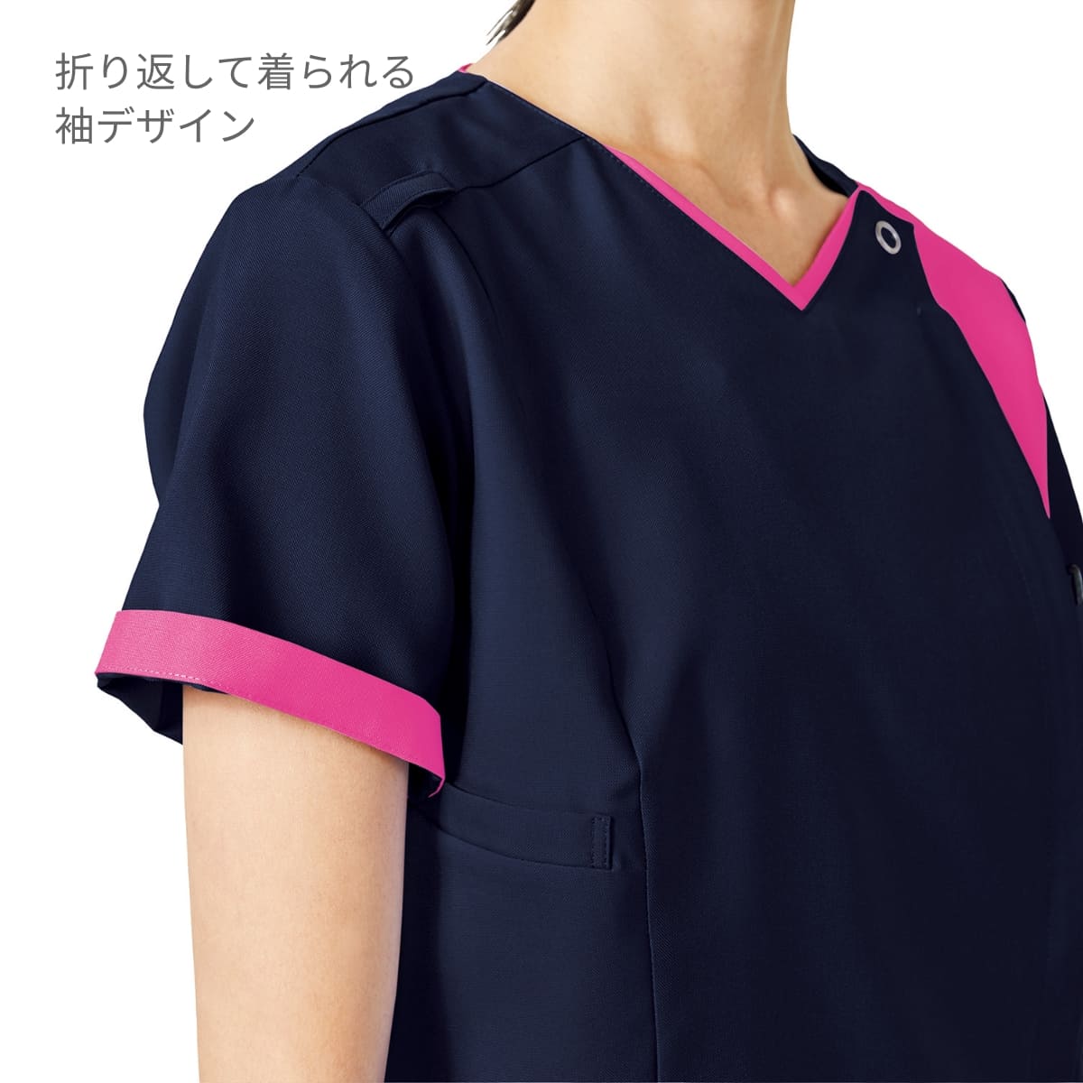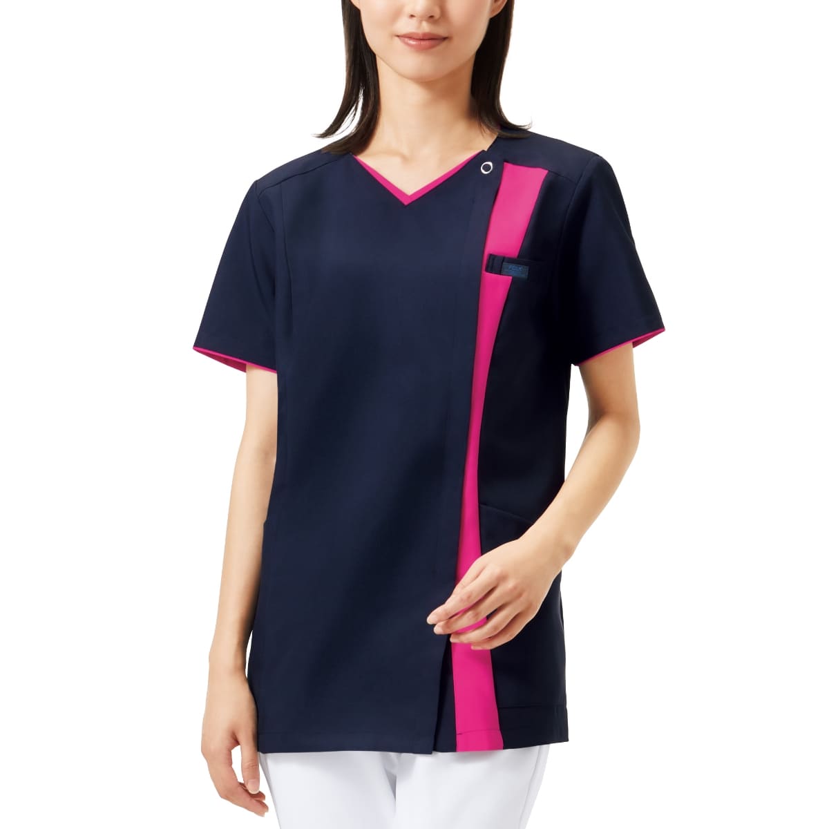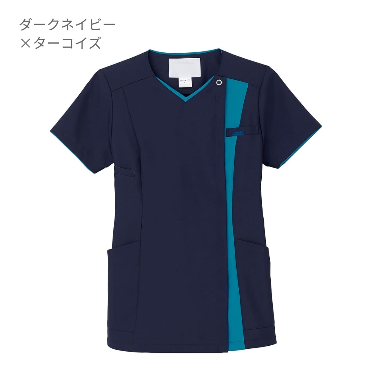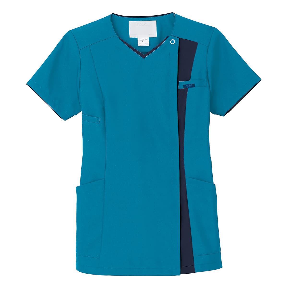 レディスジップスクラブ | 医療介護ユニフォーム | 1枚 | 7023SC | ターコイズ×ダークネイビー