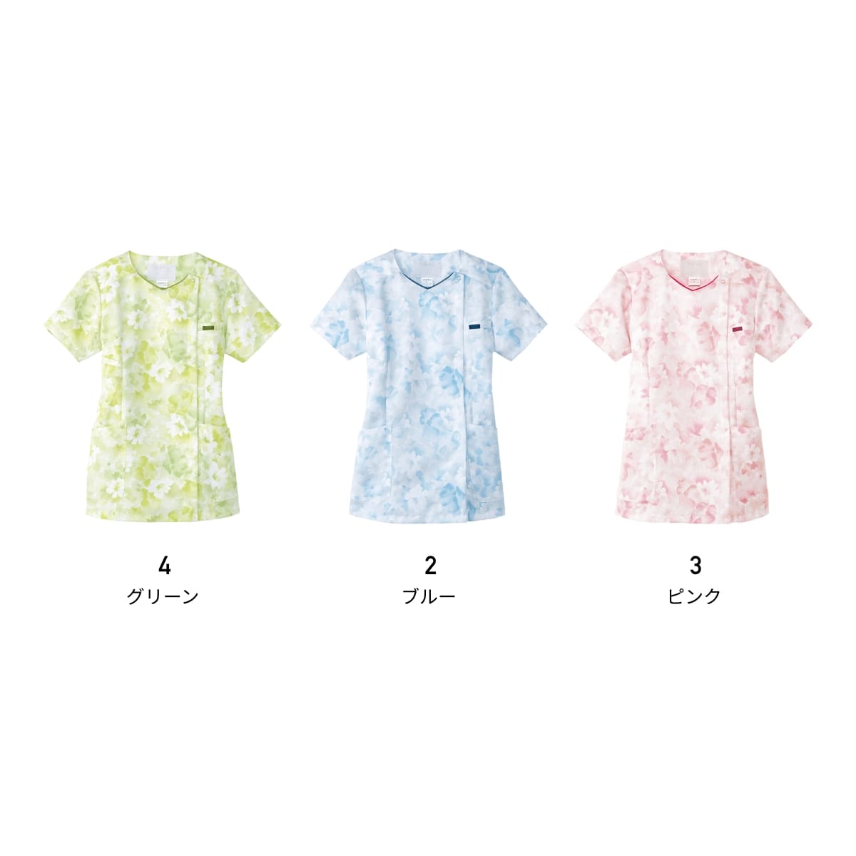 花柄ジップスクラブ | 医療介護ユニフォーム | 1枚 | 7034SC | ピンク