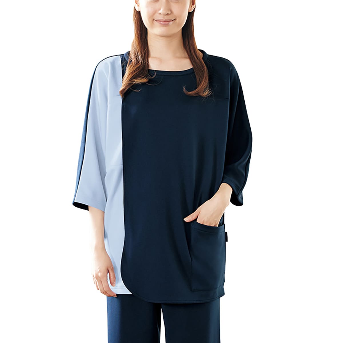 検診衣(プルオーバー型前開きタイプ) | ユニフォーム | 1枚 | 7035SK | ネイビー×サックス