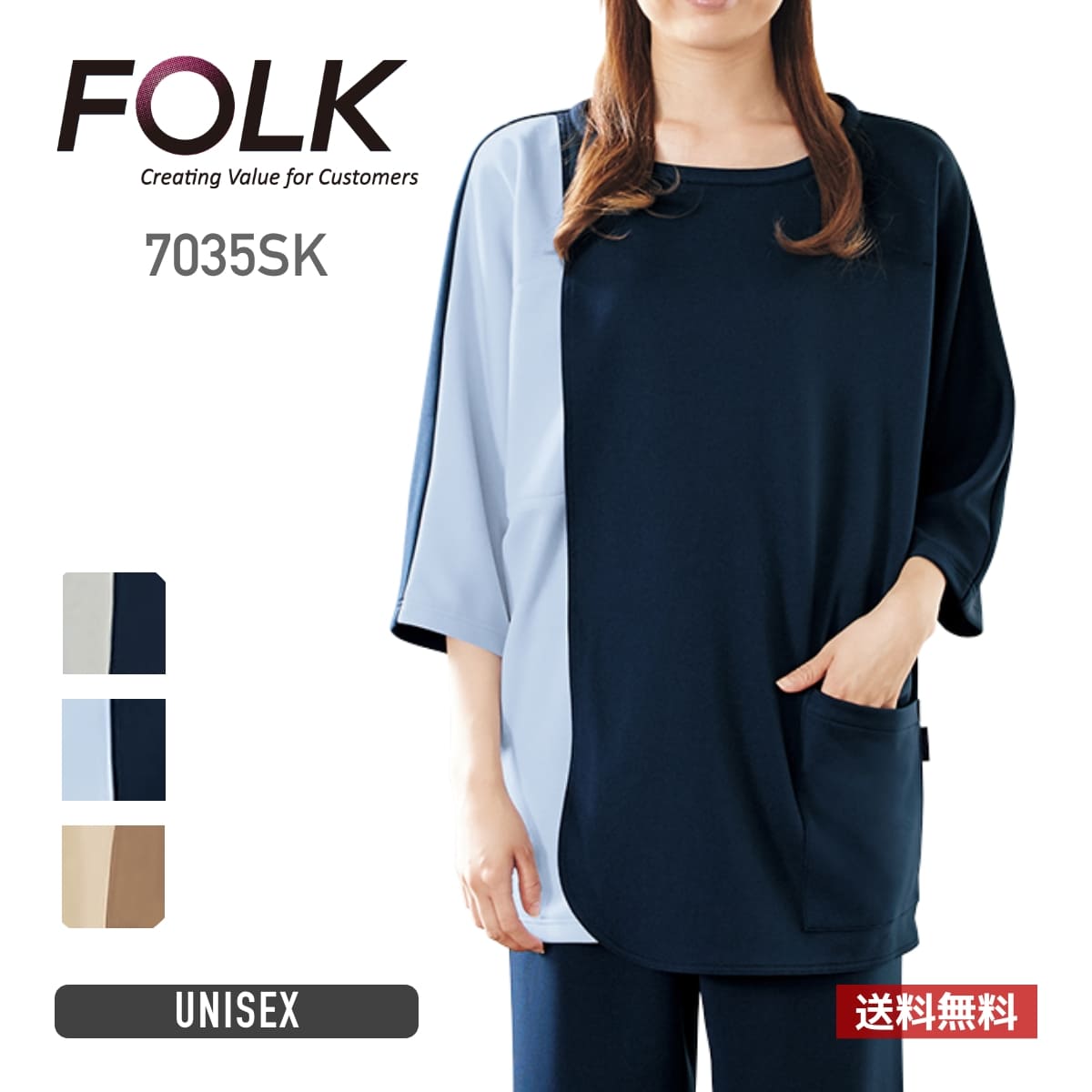 検診衣 患者衣 検査衣 入院 パジャマ フォーク FOLK ユニセックス 男女兼用 メンズ レディース 男性 女性 ポリエステル 半袖 プルオーバー 医療 介護 福祉 施設 検診 検査 診察 人間ドック 身体測定 健康診断 病院 クリニック 患者 整体 整骨 エステ ケア メディカル