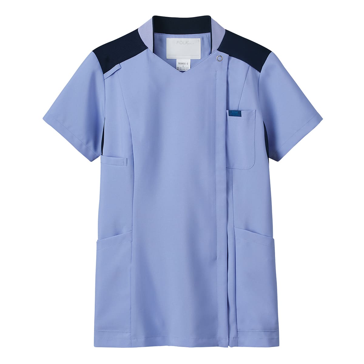 レディスジップスクラブ | 医療介護ユニフォーム | 1枚 | 7038SC | サックス×ダークネイビー