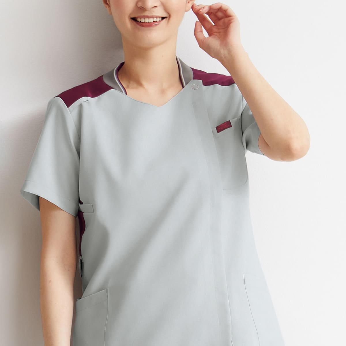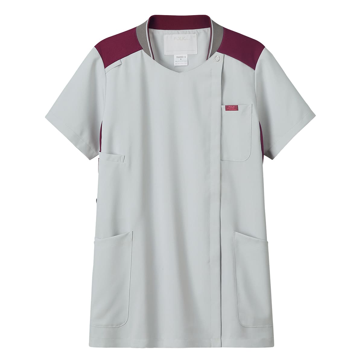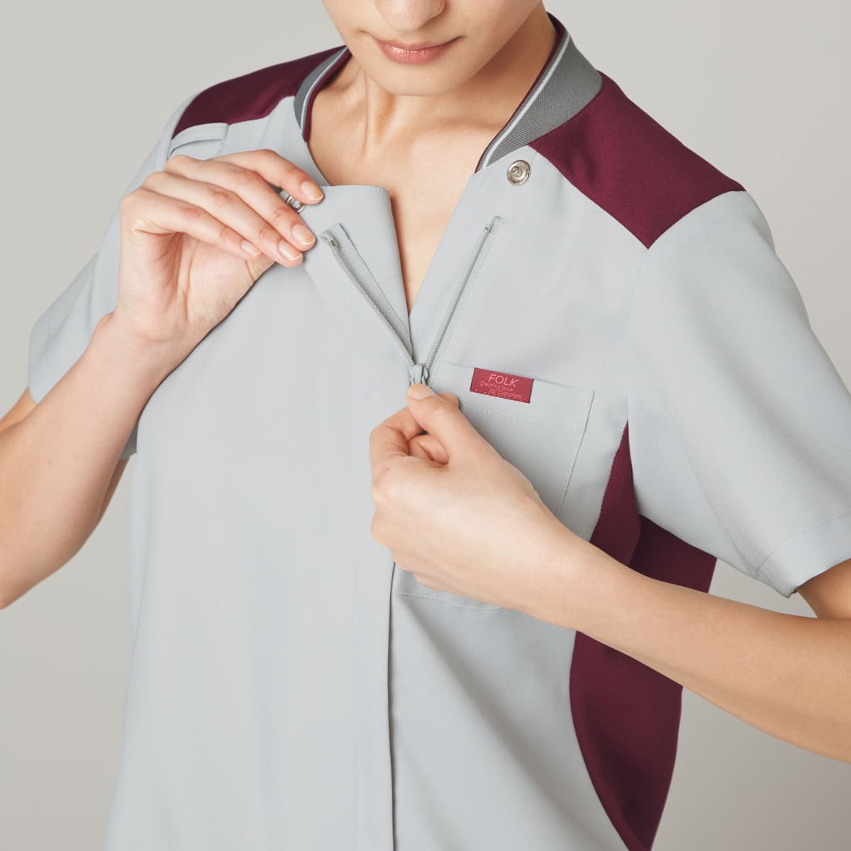 レディスジップスクラブ | 医療介護ユニフォーム | 1枚 | 7043SC | グレー×バーガンディ
