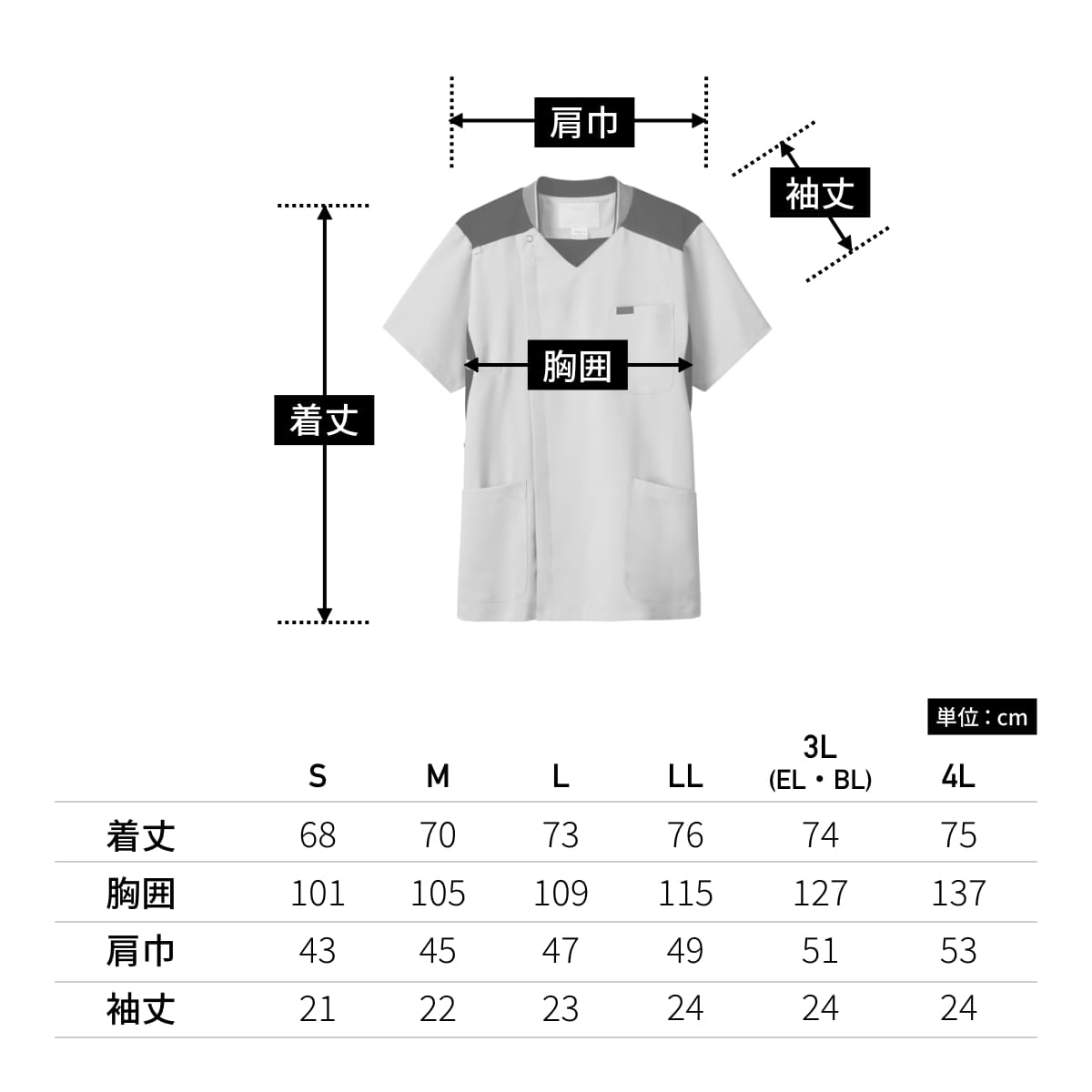 | 着丈 | 68 | 70 | 73 | 76 | 74 | 75 |