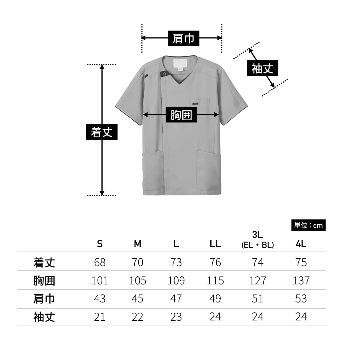 | 着丈 | 68 | 70 | 73 | 76 | 74 | 75 |