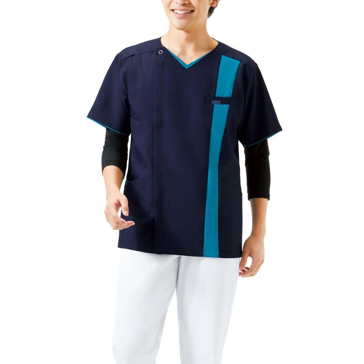 メンズジップスクラブ | 医療介護ユニフォーム | 1枚 | 7058SC | ロイヤルブルー×ダークネイビー