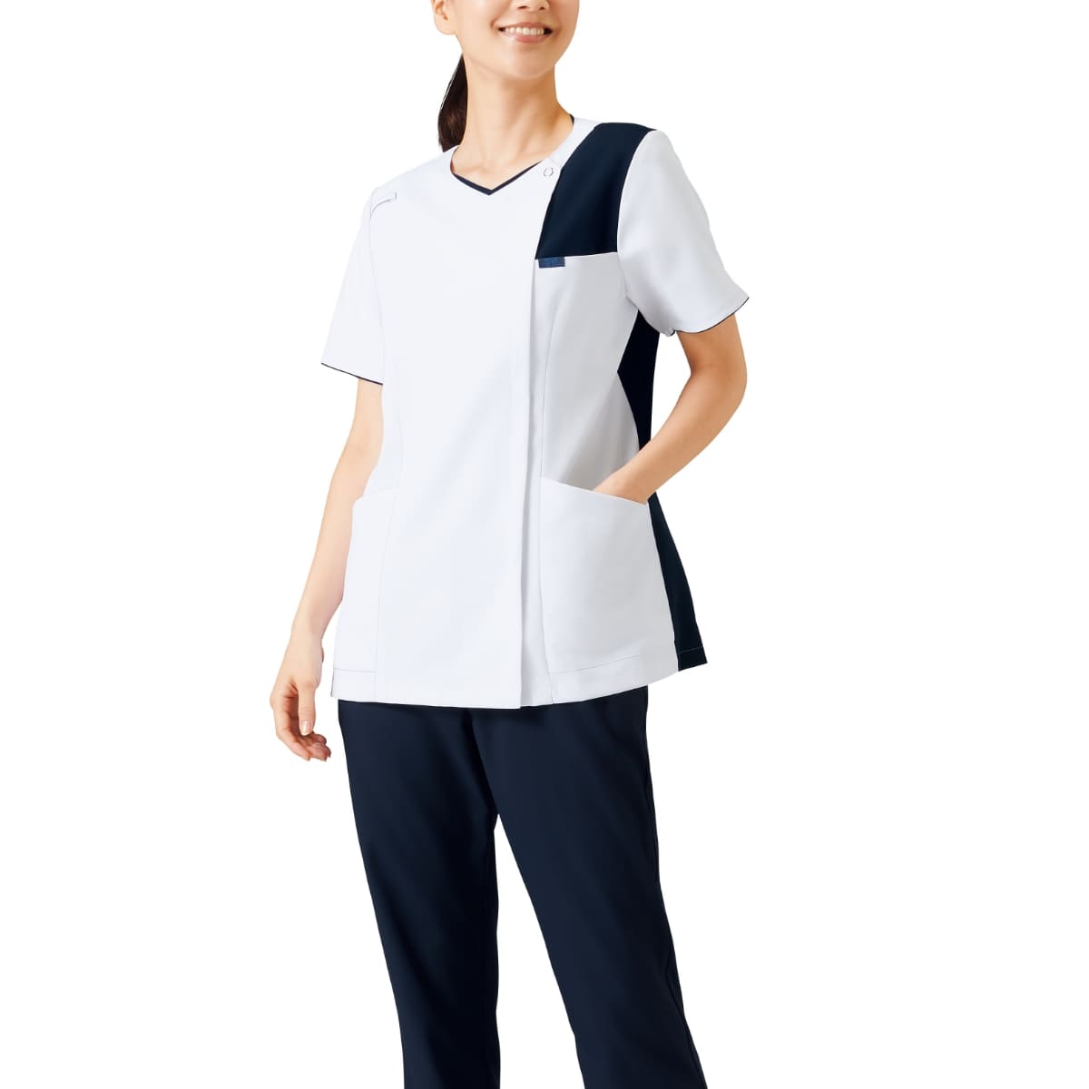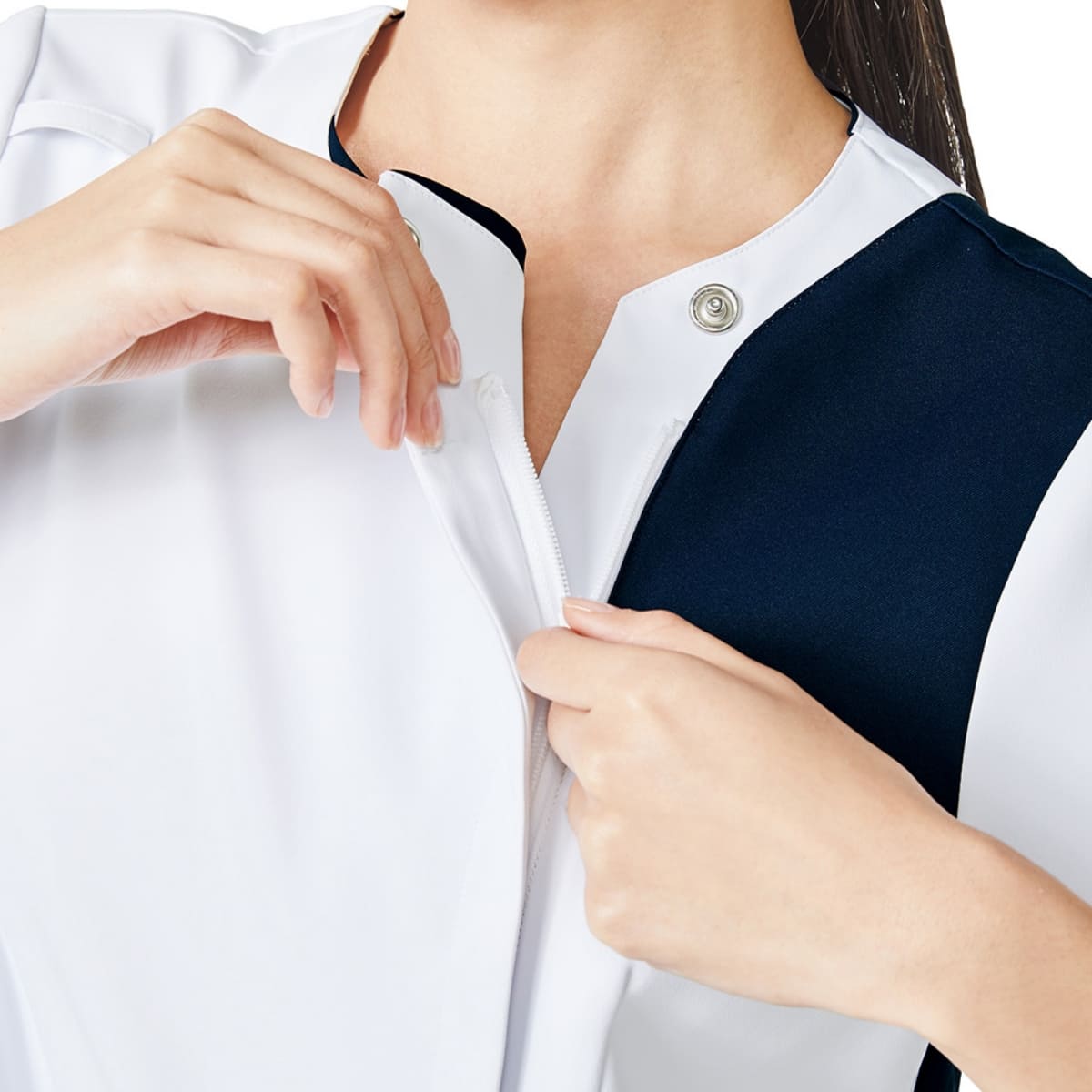 レディスジップスクラブ | 医療介護ユニフォーム | 1枚 | 7059SC | ホワイト×ダークネイビー