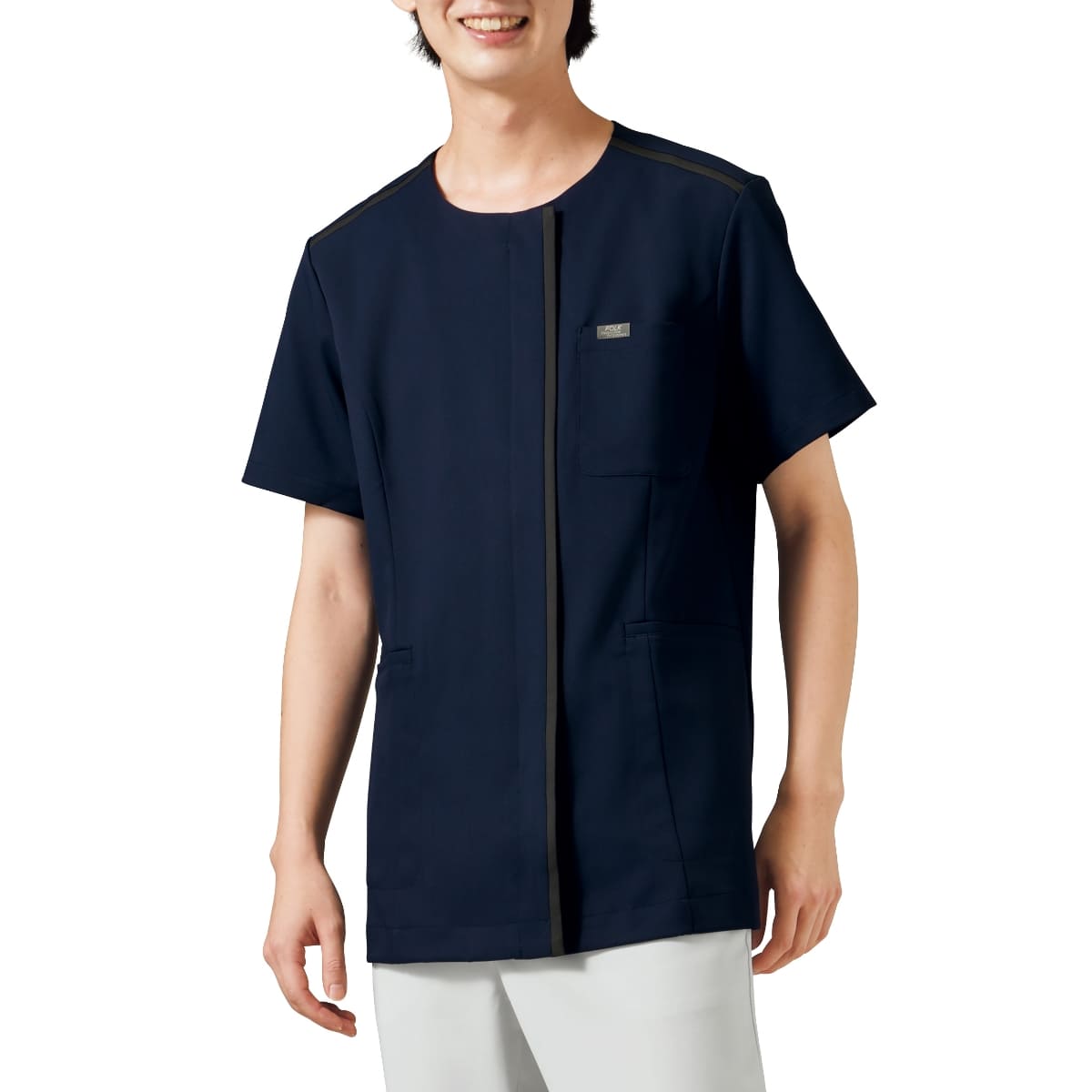 細くて控えめな配色の切り替えはスタイリッシュで男女問わず着用いただけます。袖口を折り返すと配色で色が変わり、オシャレなポイントとして、また日勤夜勤を区別する目的でも活用可能。腰ポケットは従来品とは異なり、玉縁ポケットにすることで、他にはない洗練されたデザインになっています。ホワイトは美容クリニックなどのおもてなし向けとしてもオススメ。ストレッチ素材を使用し、快適な着心地の男女兼用スクラブです。