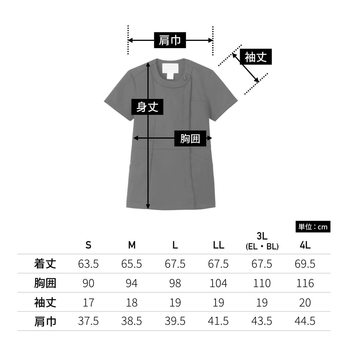| 着丈 | 63.5 | 65.5 | 67.5 | 67.5 | 67.5 | 69.5 |