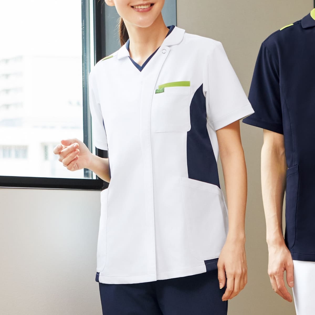 ジップスクラブ | 医療介護ユニフォーム | 1枚 | 7106SC | ホワイト×ライム