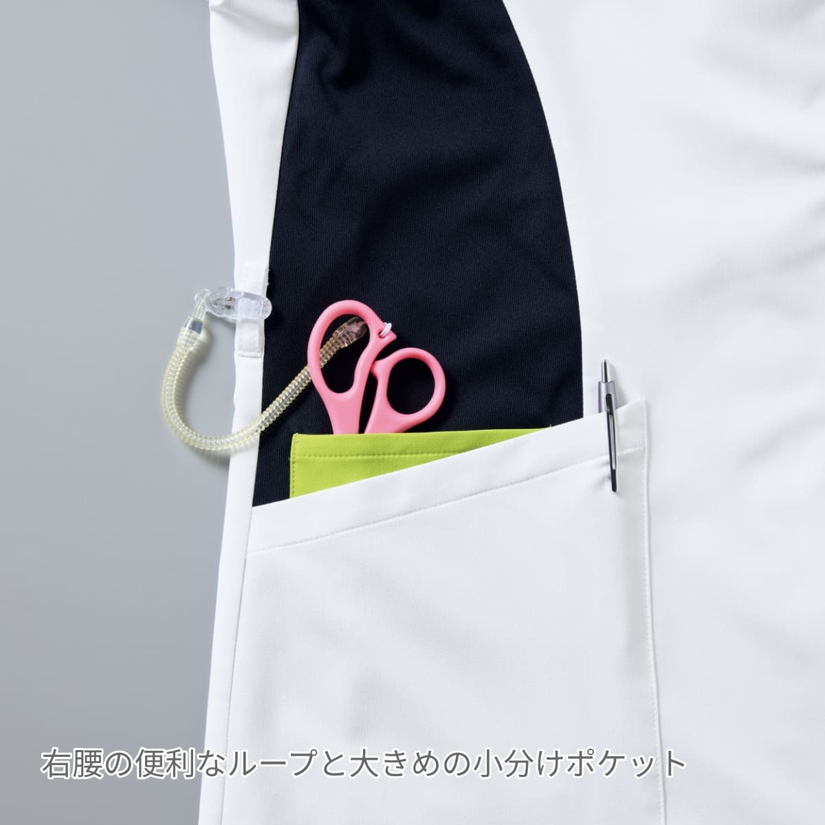 ライトフィックスは軽量で伸縮性があり、吸水速乾、制電機能も備えた素材です。襟付き仕様のため、首掛けストラップを使用する方にもおすすめ。また、羽織って着るジップタイプなので、着脱時に髪型が乱れたり、メイクが崩れる心配もなく安心。同素材のパンツ(5035SC)と合わせて着用することで、より快適に過ごしていただけます。