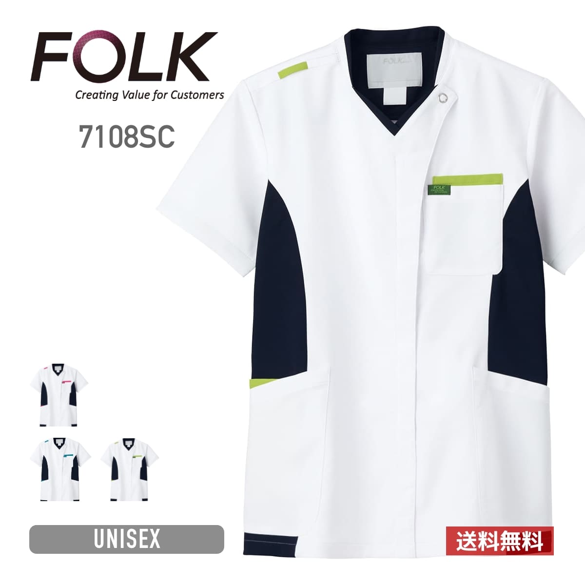 ジップスクラブ | 医療介護ユニフォーム | 1枚 | 7108SC | ホワイト×ライム