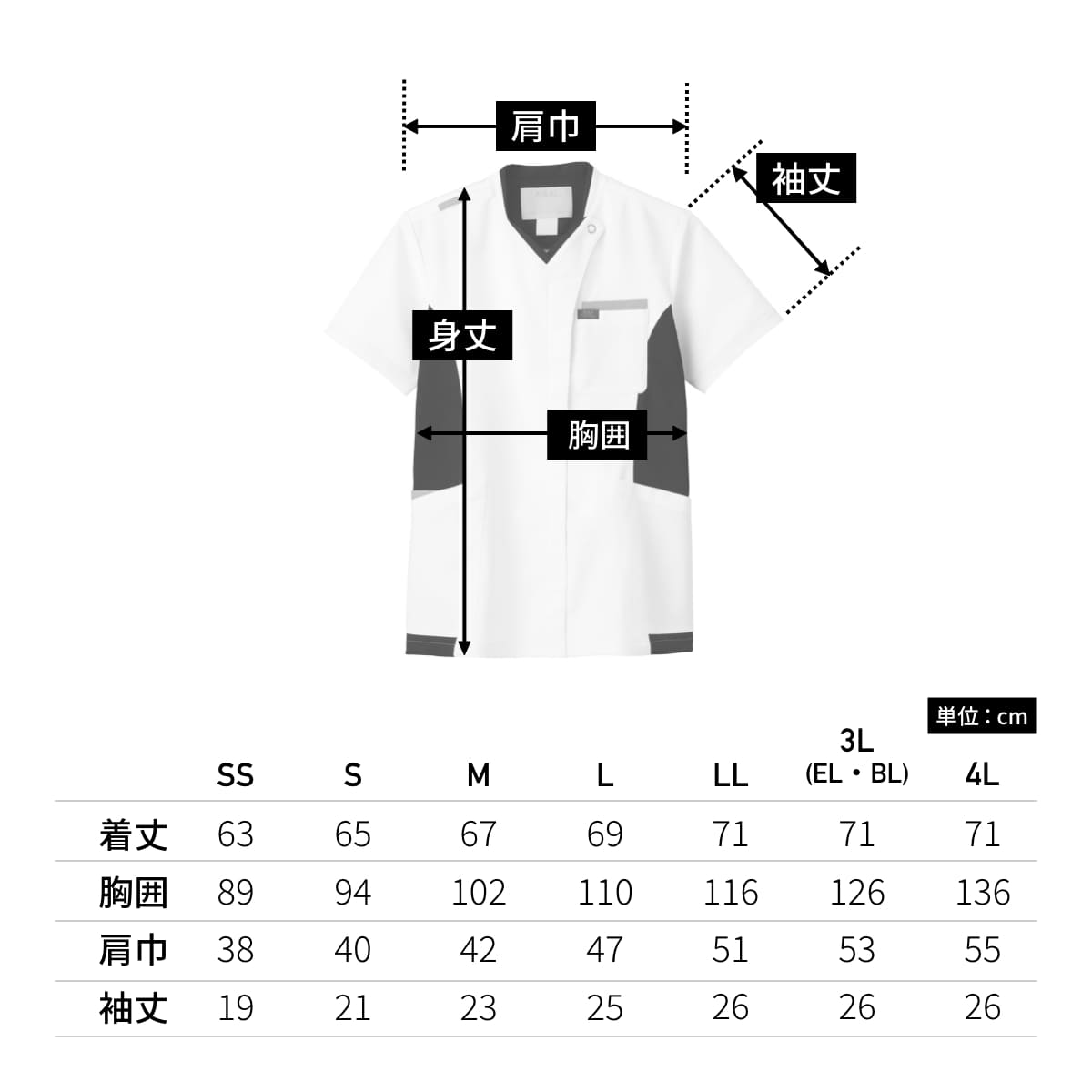 | 着丈 | 63 | 65 | 67 | 69 | 71 | 71 | 71 |