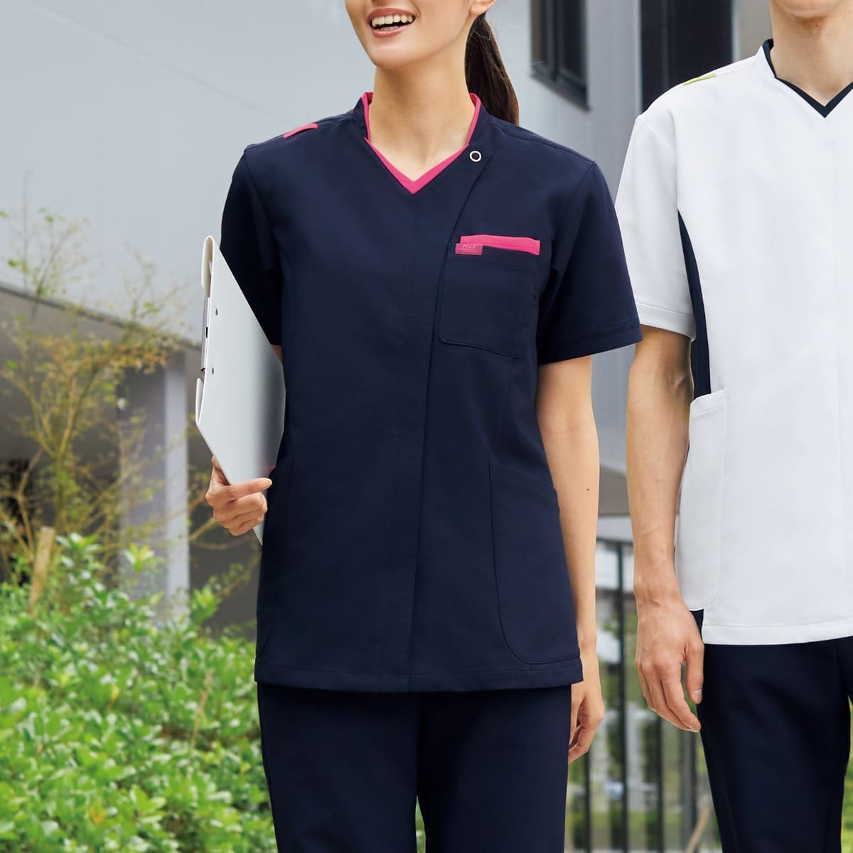 ジップスクラブ | 医療介護ユニフォーム | 1枚 | 7109SC | ダークネイビー×ライム