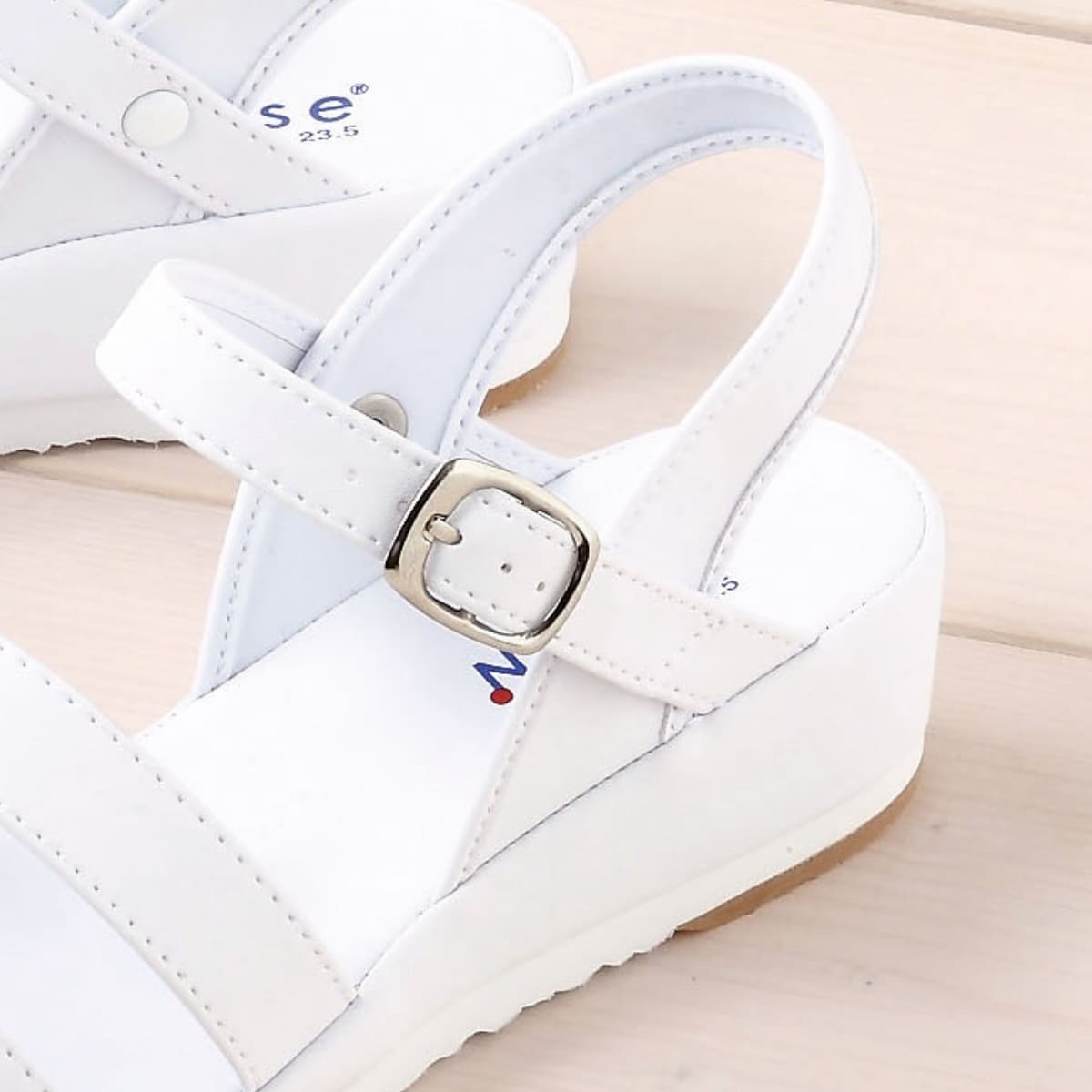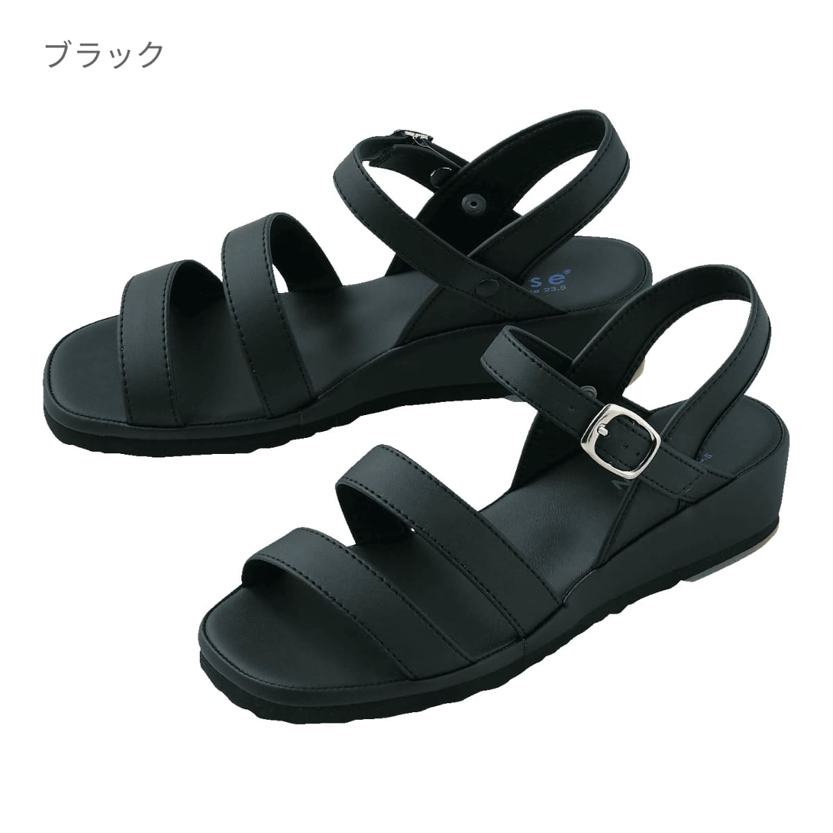 ヒールの高さは4cmと歩くのにちょうどいい高さ。サンダルタイプなので通気性も良く、ムレにくく快適です。抗菌防臭の加工付なので、長時間・長期間の使用でも安心。21~26cmまで豊富なサイズ展開で幅広い方が着用可能。疲れにくいゆったりとした履き心地で、しっかり足を固定してくれるので歩きやすい二本線サンダルです。