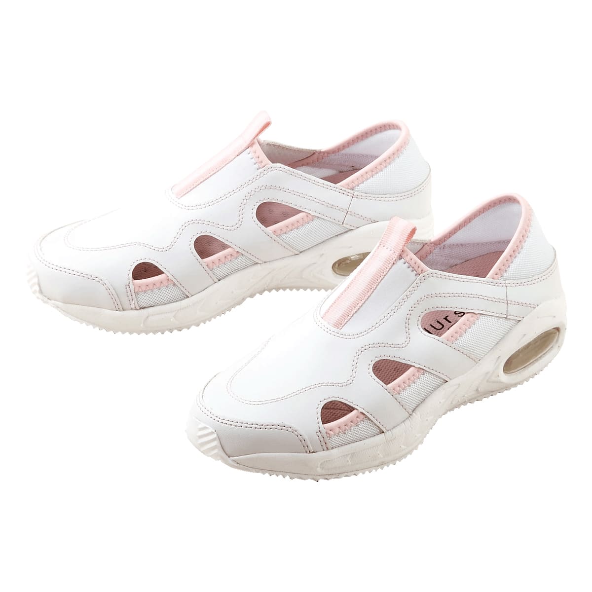 脱ぎ履ぎの多い時はサボタイプとしても使用できる便利な2wayタイプです。静電気帯電防止や抗菌防臭、エアバッグ内蔵とたくさんの便利な機能が備わったシューズ。中敷きの抗菌・防臭加工で、お仕事中の気になる臭いも軽減してくれます。足にジャストフィットするストレッチ素材なので、疲れにくい設計に。通気性をはじめとした機能性抜群の男女兼用ナースシューズです。