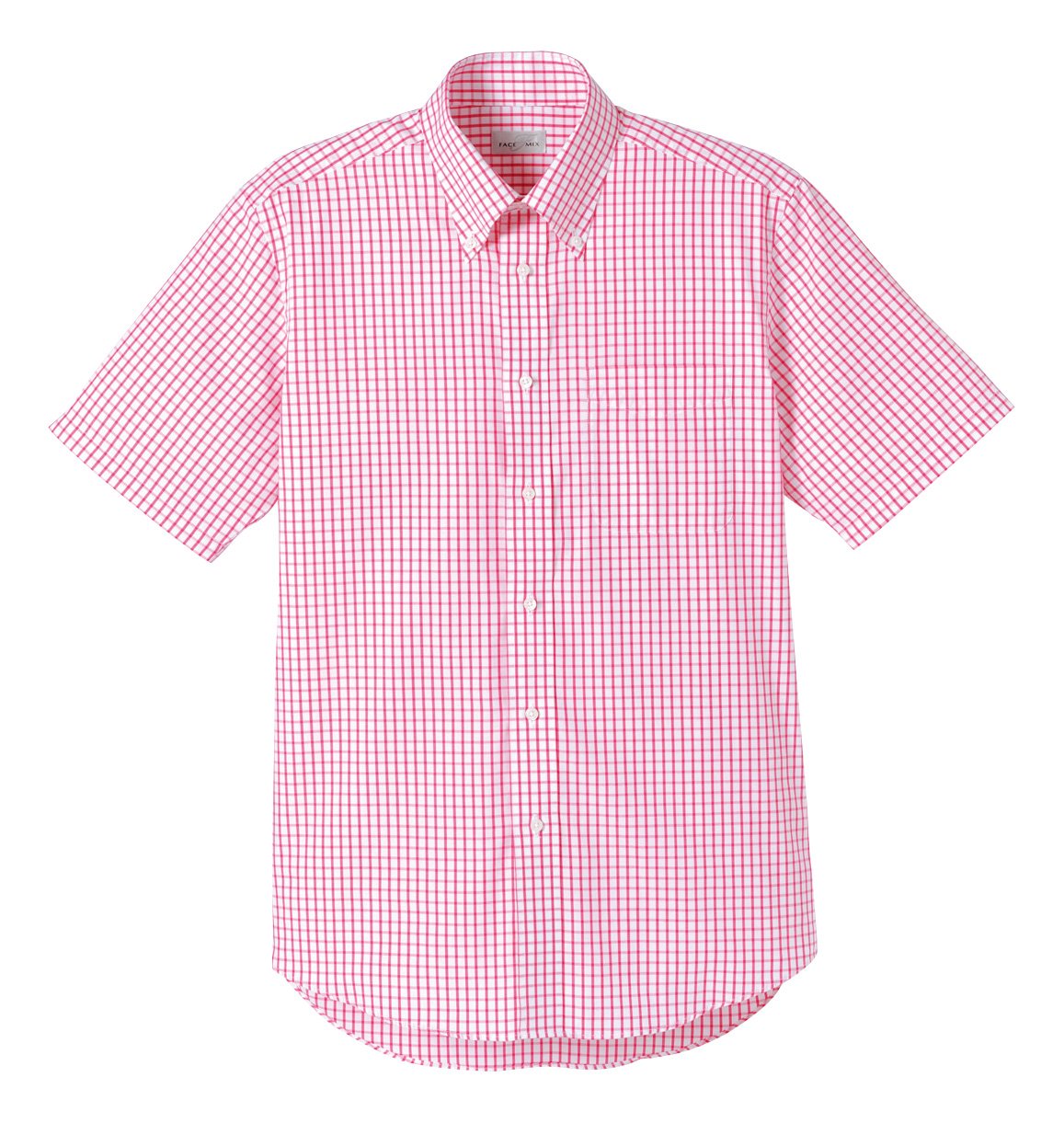 親しみやすいチェック柄。ユニセックスシャツの半袖タイプ。