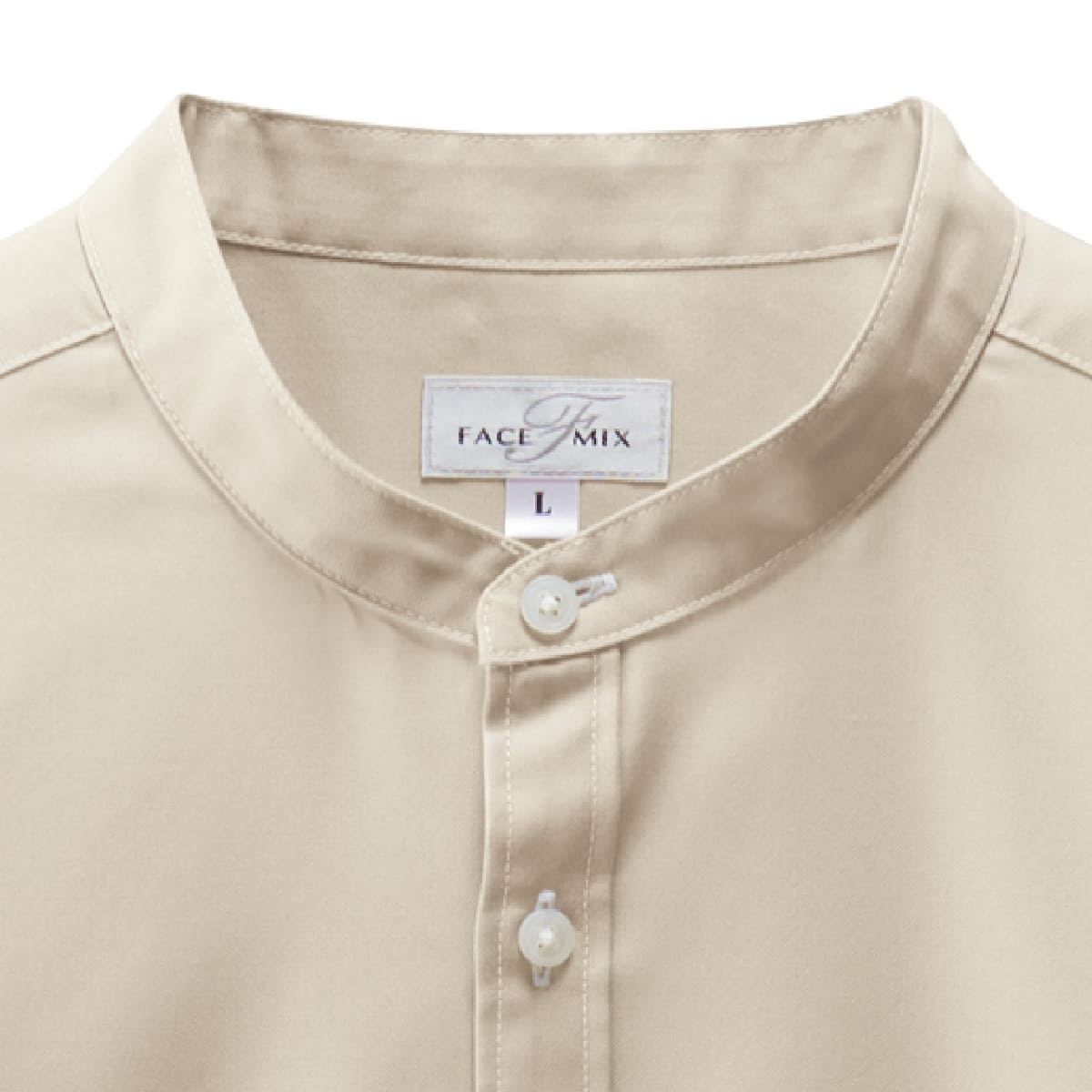 程よくトレンドを効かせたシリーズのバンドカラー長袖シャツ。