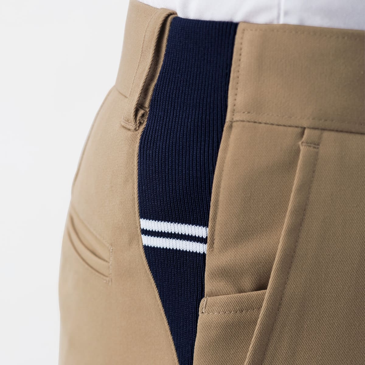 サイズ調節できるウエストリブ仕様。動きやすさを追求したメンズチノ。