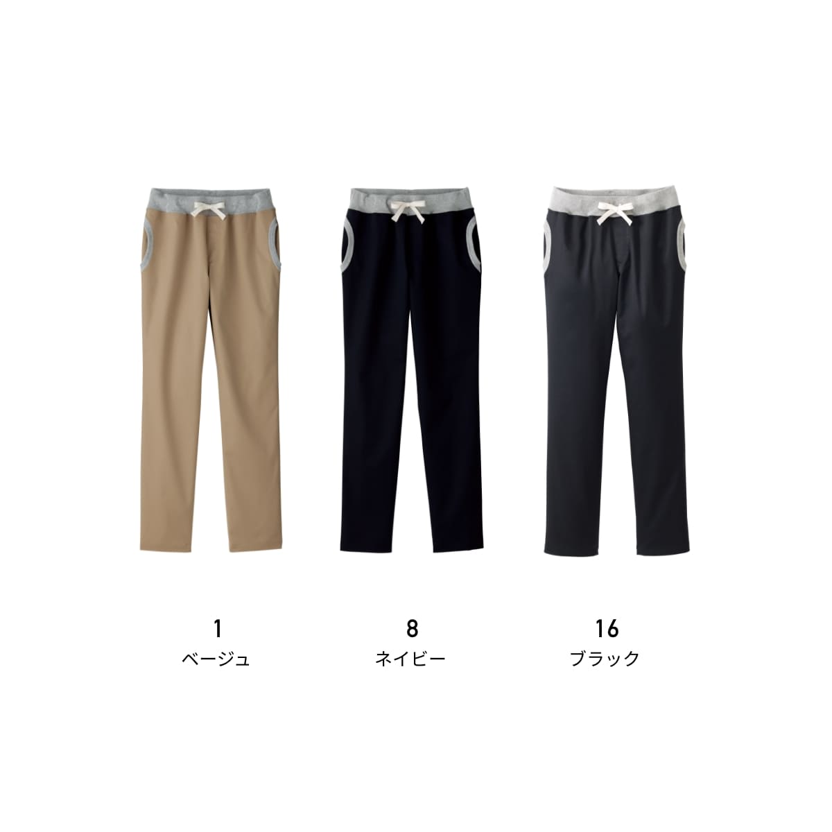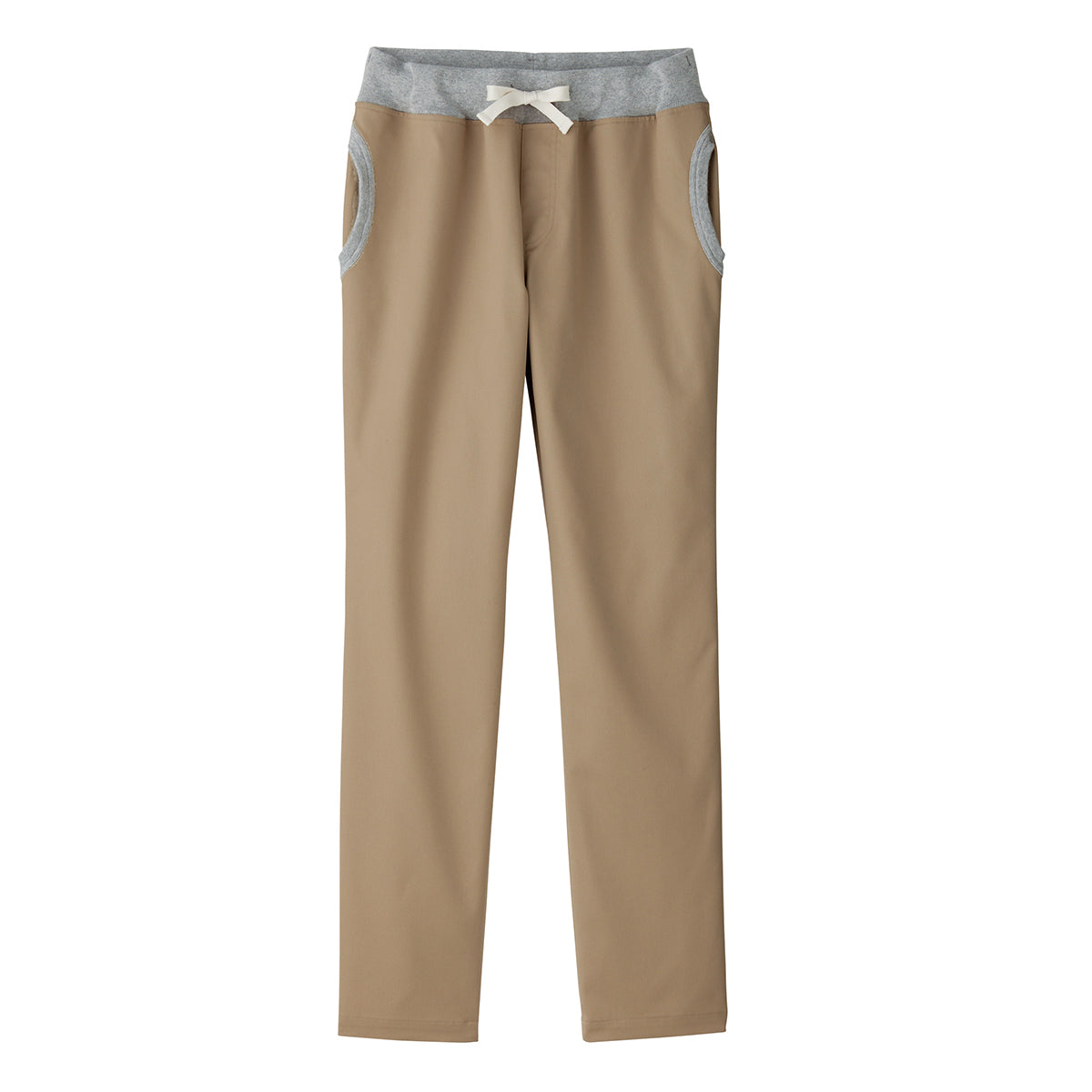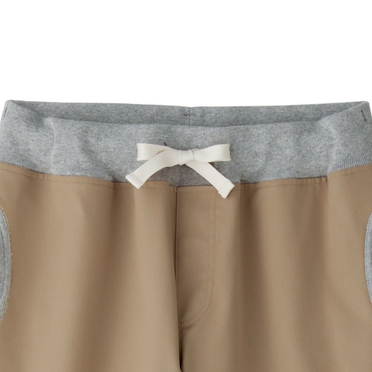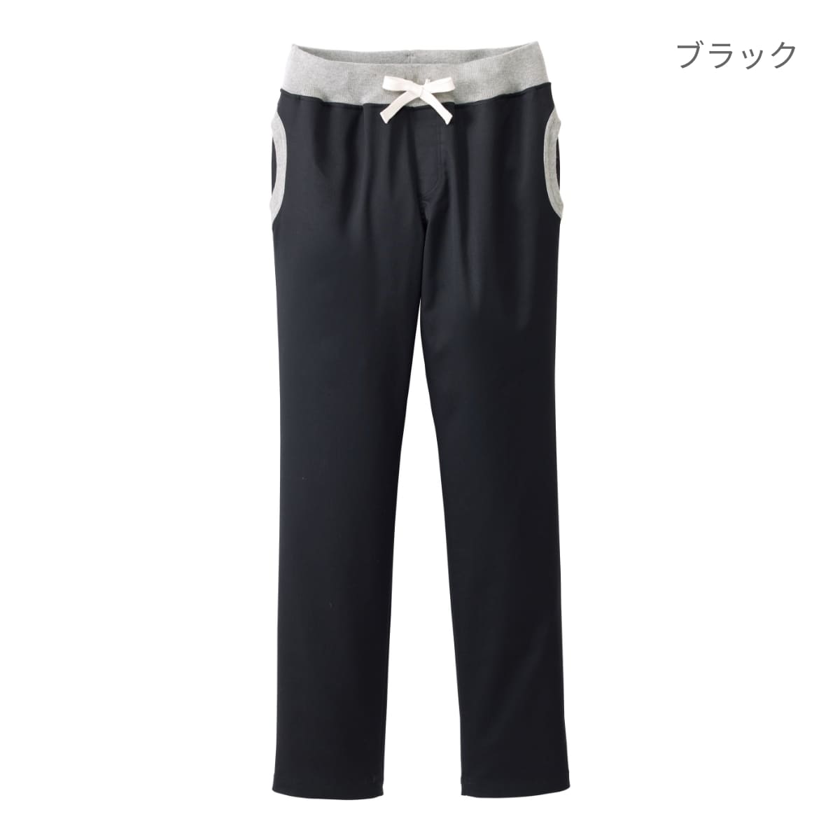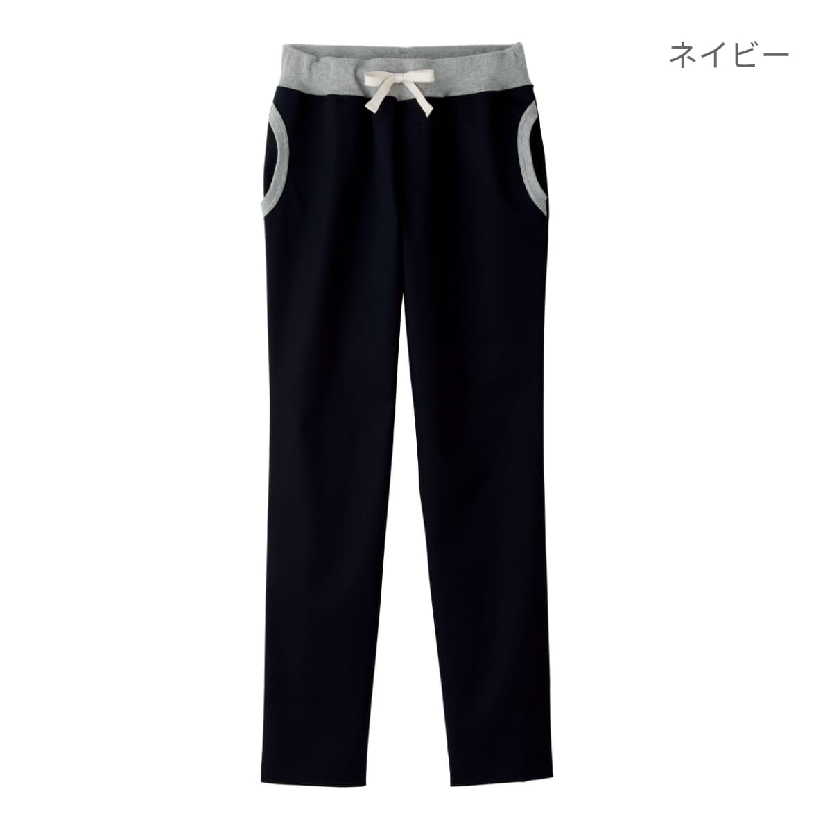 ウエストはフライス仕様で平ゴム入り。紐もついていて、自由にウエストの調節が可能です。
