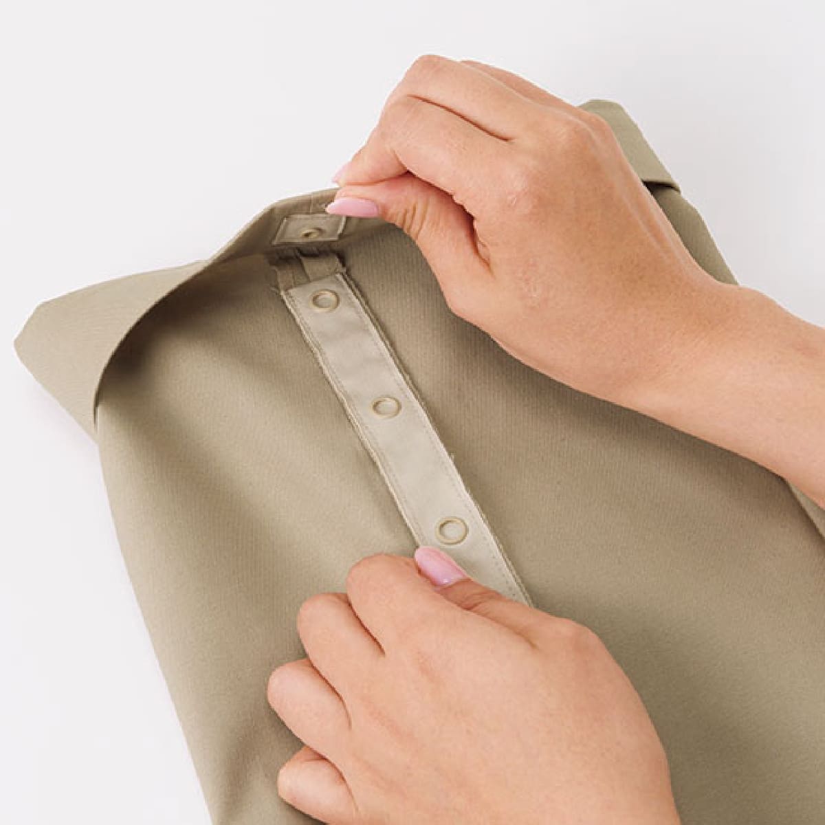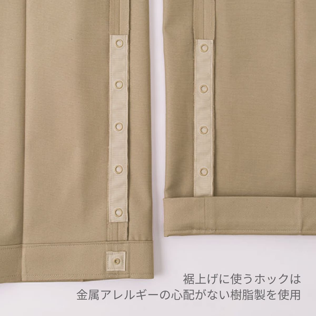 手間と時間のかかる通常の裾上げとは違い、ワンタッチのスナップホックを閉じるだけで簡単に裾上げができます。