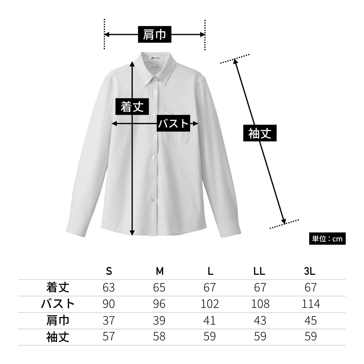 単位:cm| S | M | L | LL | 3L | |
