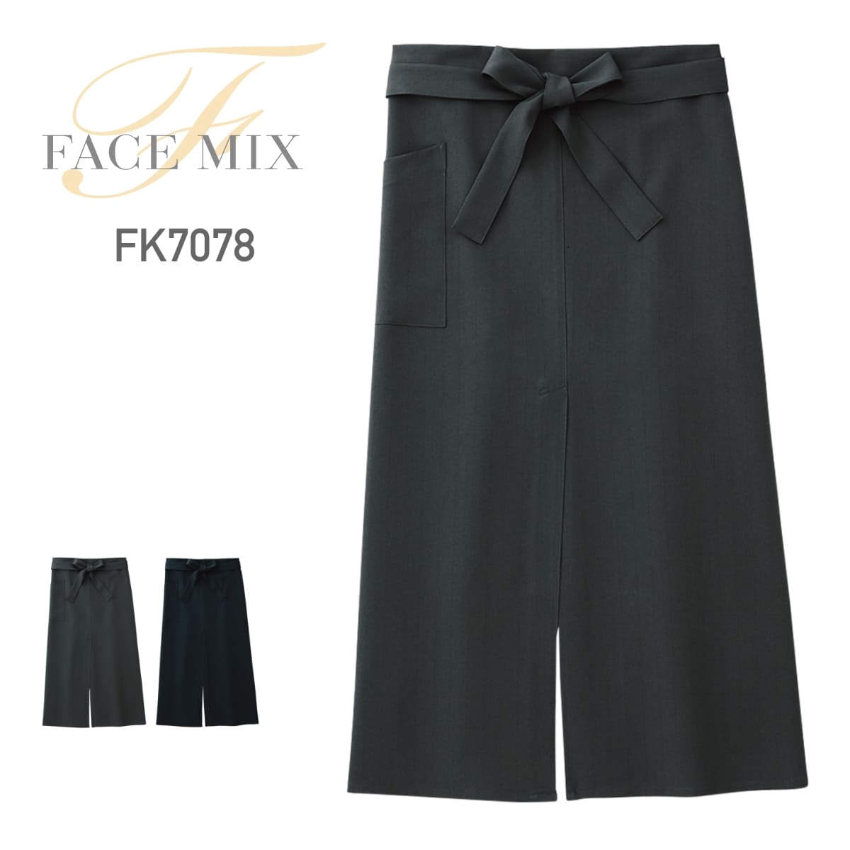 スリット入りロングエプロン | カフェ・飲食店制服 | 1枚 | FK7078 | グレー