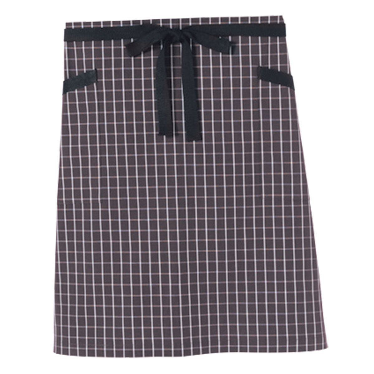チェック柄ロングエプロン | カフェ・飲食店制服 | 1枚 | FK7123 | ブラウン