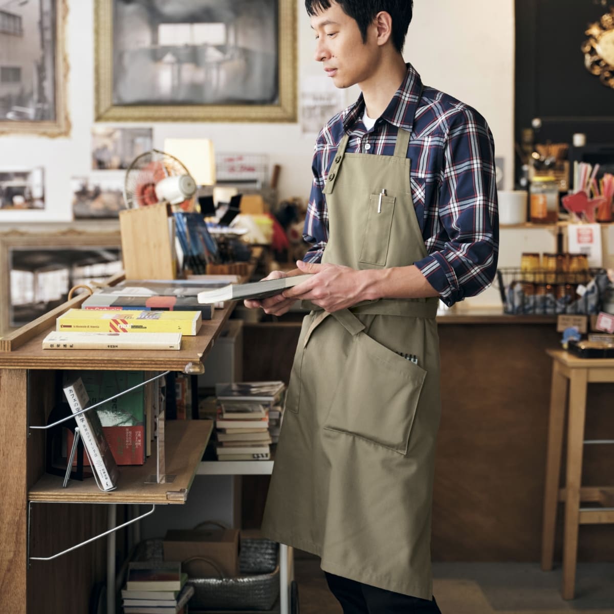 胸当てエプロン | ノベルティ(小物) | 1枚 | FK7193 | ブラウン×カーキ
