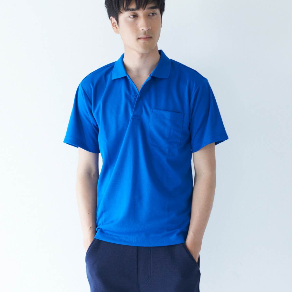 UVカット機能も備えた、ポケット付ドライポロシャツ。吸汗速乾性に優れたドライメッシュ素材を使用しました。