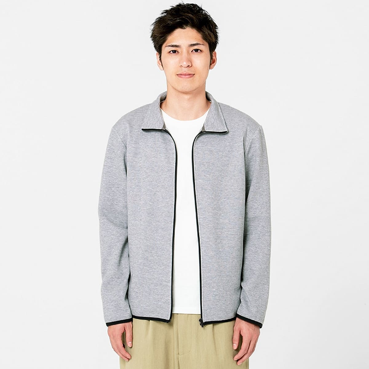 ブラックで統一したジップやパイピングがクールなアクセントのジップジャケット