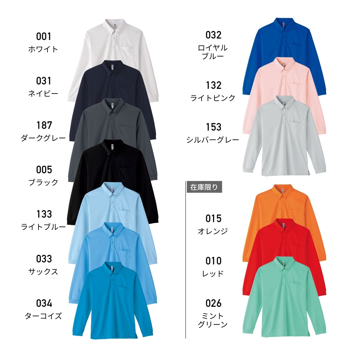 4.4オンス ドライボタンダウン長袖ポロシャツ | ビッグサイズ | 1枚 | 00314-ABL | ライトブルー