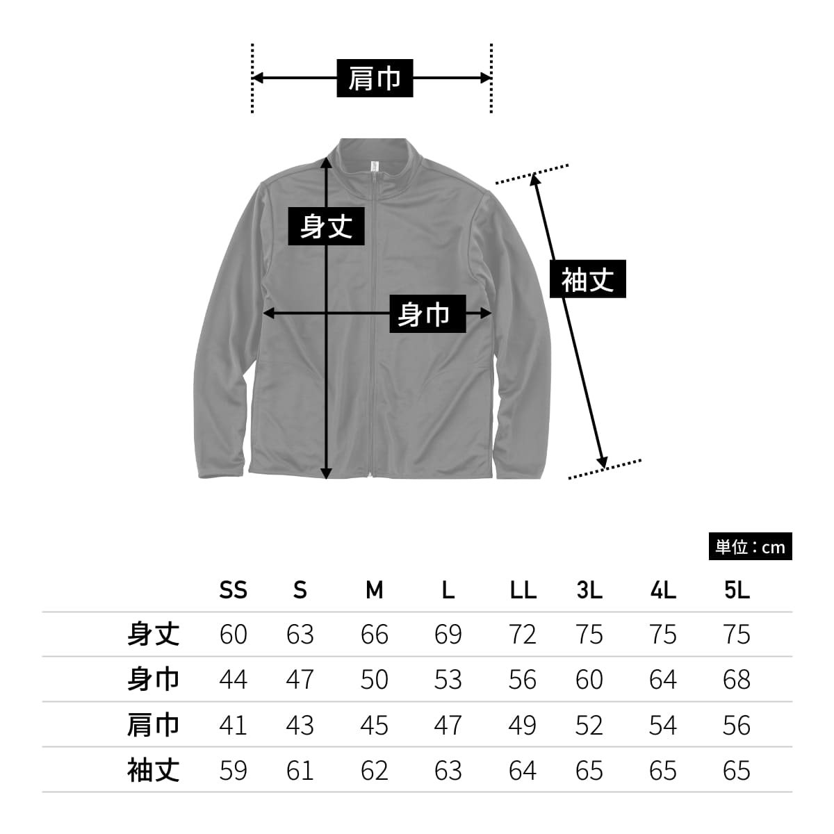 | 身丈 | 60 | 63 | 66 | 69 | 72 | 75 | 75 | 75 |