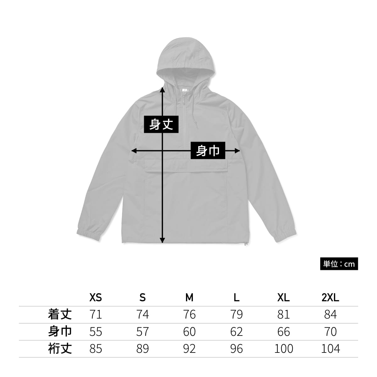 身丈 71 74 76 79 81 84