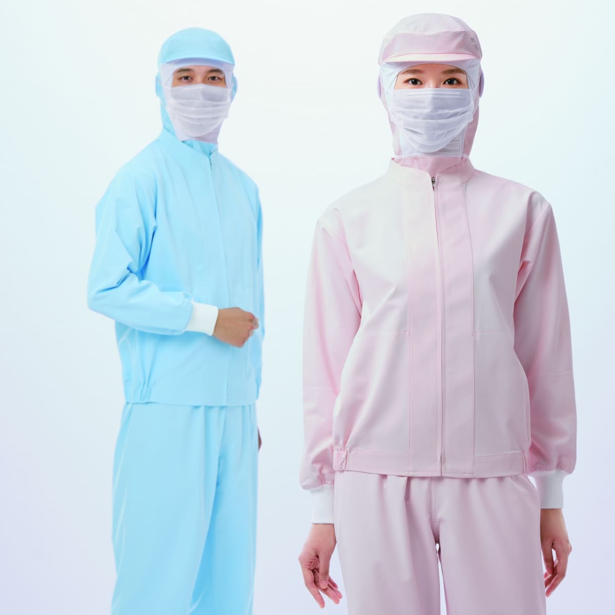 工業洗濯可・制菌加工・スケ防止・吸汗性・制電・ストレッチ・速乾・低発塵