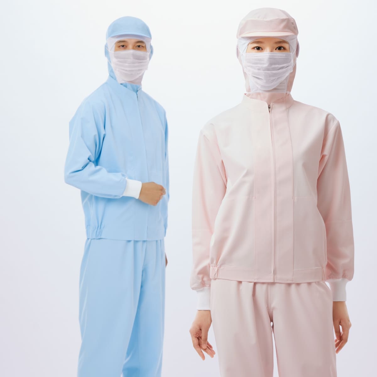工業洗濯可・制菌加工・スケ防止・吸汗性・制電・ストレッチ・速乾・低発塵