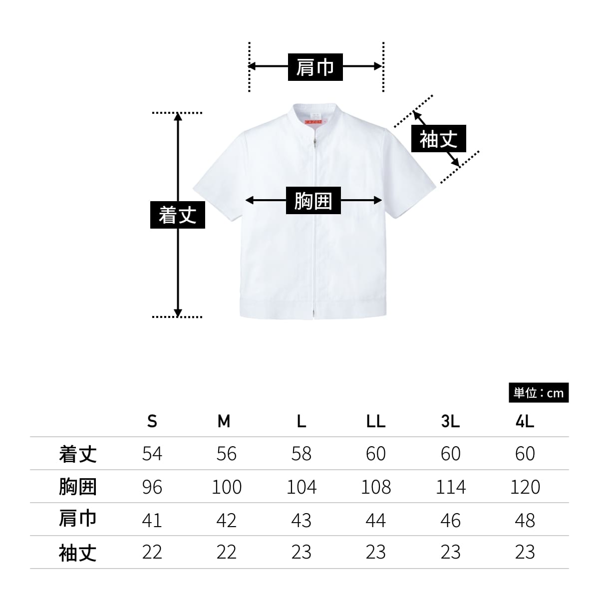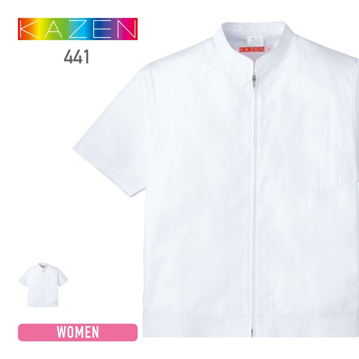 半袖 ジャンパー ジャケット ジャンパー ブルゾン 上 ブロード 制菌加工 工業洗濯可 吸汗性 男女兼用 ユニセックス 女性 レディース KAZEN カゼン FOOD フード FOOD Factory フードファクトリー Tshirt.st TSHIRT.ST ティーシャツドットエスティ てぃーしゃつどっとえすてぃ 現場 企業 クリニック 仕事着 ワーク ユニフォーム 制服 衛生 衛生管理 食品工場 工場 食品加工 厨房 調理 給食 食品 飲食 飲食店 白衣 衛生衣 ホワイト 白 ウエスト S M L LL XL 3L 4L
