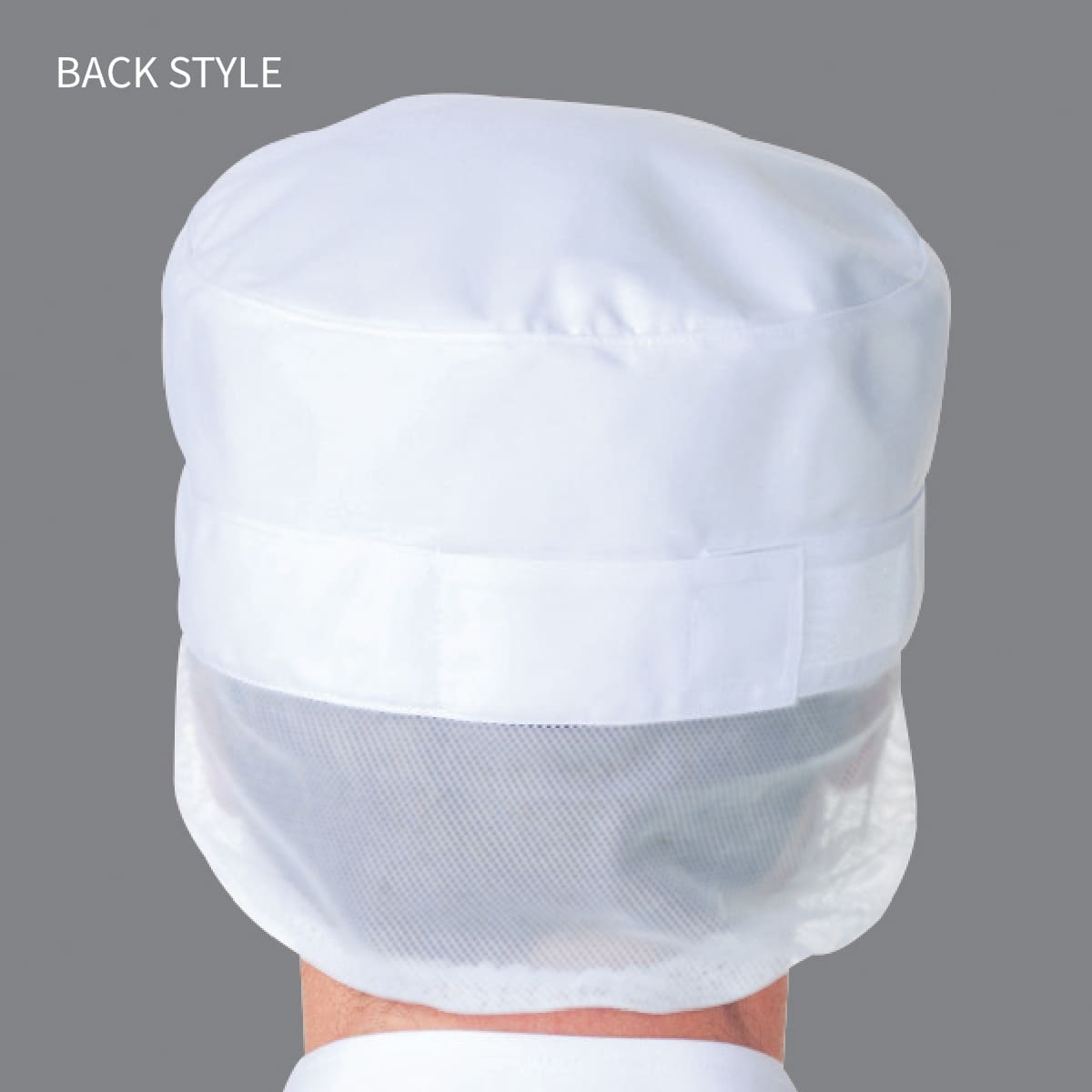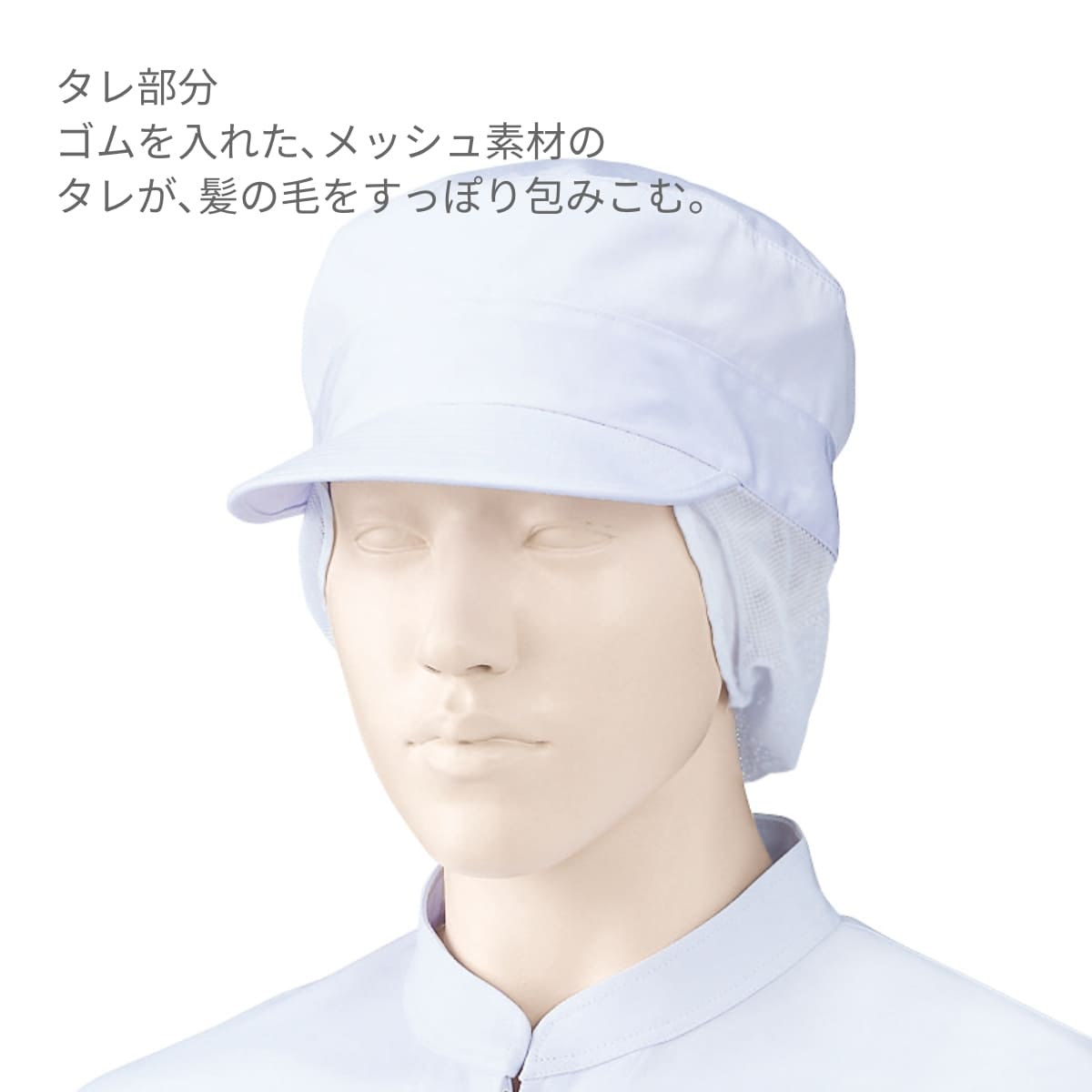 ・タレ部分:ゴム入り(ゴムを入れたメッシュ素材のタレが、髪の毛をすっぽり包み込む。)