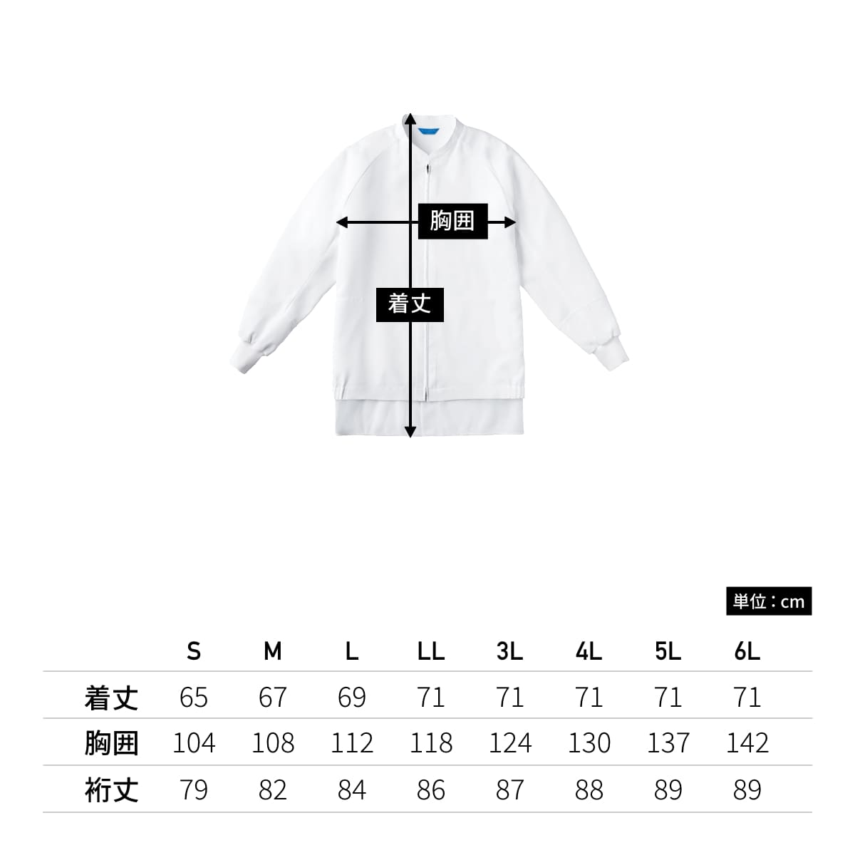| 着丈 | 65 | 67 | 69 | 71 | 71 | 71 | 71 | 71 |