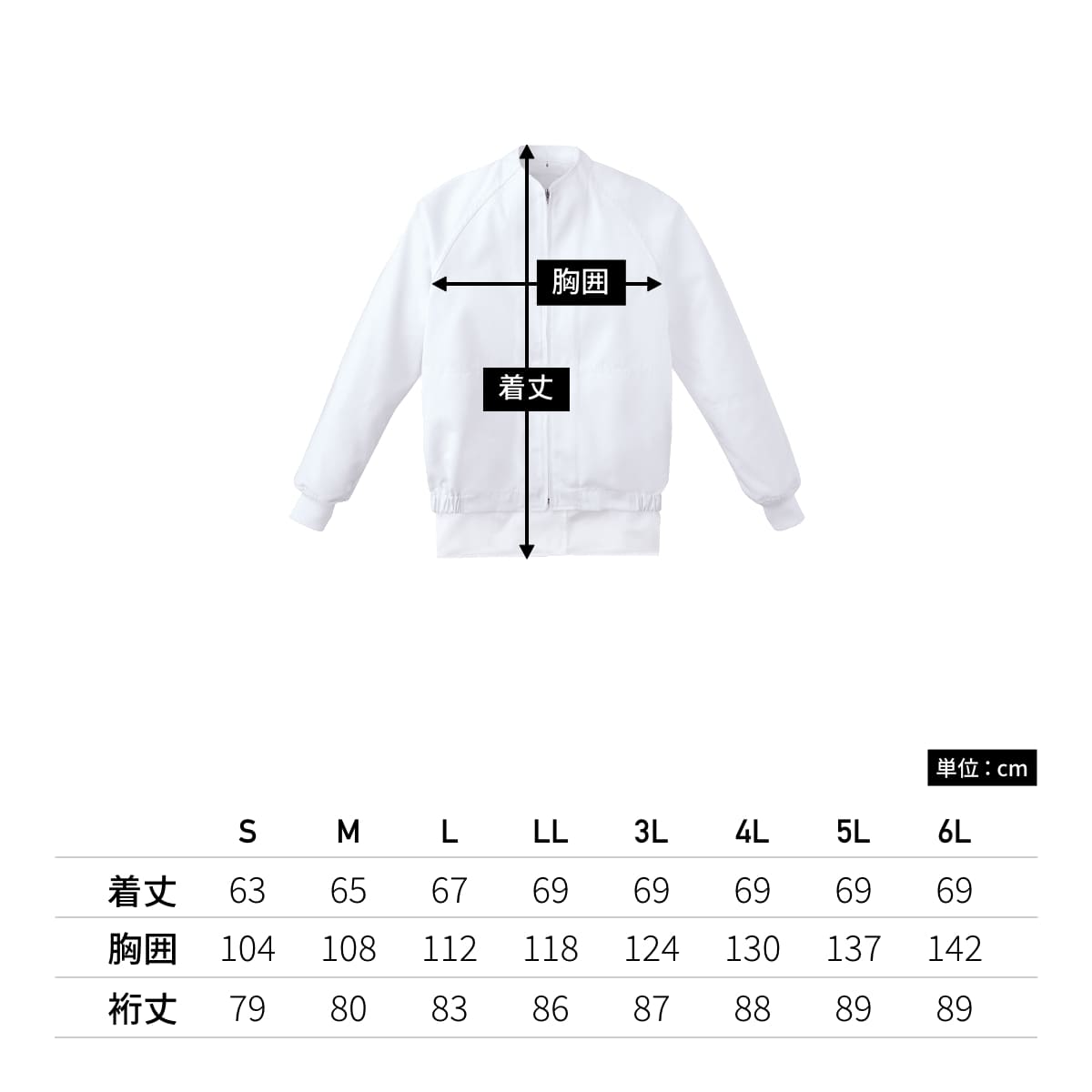 ジャンパー ジャケット ブルゾン 常温環境向け 工業洗濯可 吸汗性 制電 速乾 男女兼用 ユニセックス 男性 メンズ 女性 レディース KAZEN カゼン FOOD フード FOOD Factory フードファクトリー Tshirt.st TSHIRT.ST ティーシャツドットエスティ てぃーしゃつどっとえすてぃ トップス 上 現場 企業 クリニック 仕事着 ワーク ユニフォーム 制服 衛生 衛生管理 食品工場 工場 食品加工 厨房 調理 給食 食品 飲食 飲食店 白衣 衛生衣 ホワイト ブルー 白 青 S M L LL XL 3L 4L 5L 6L