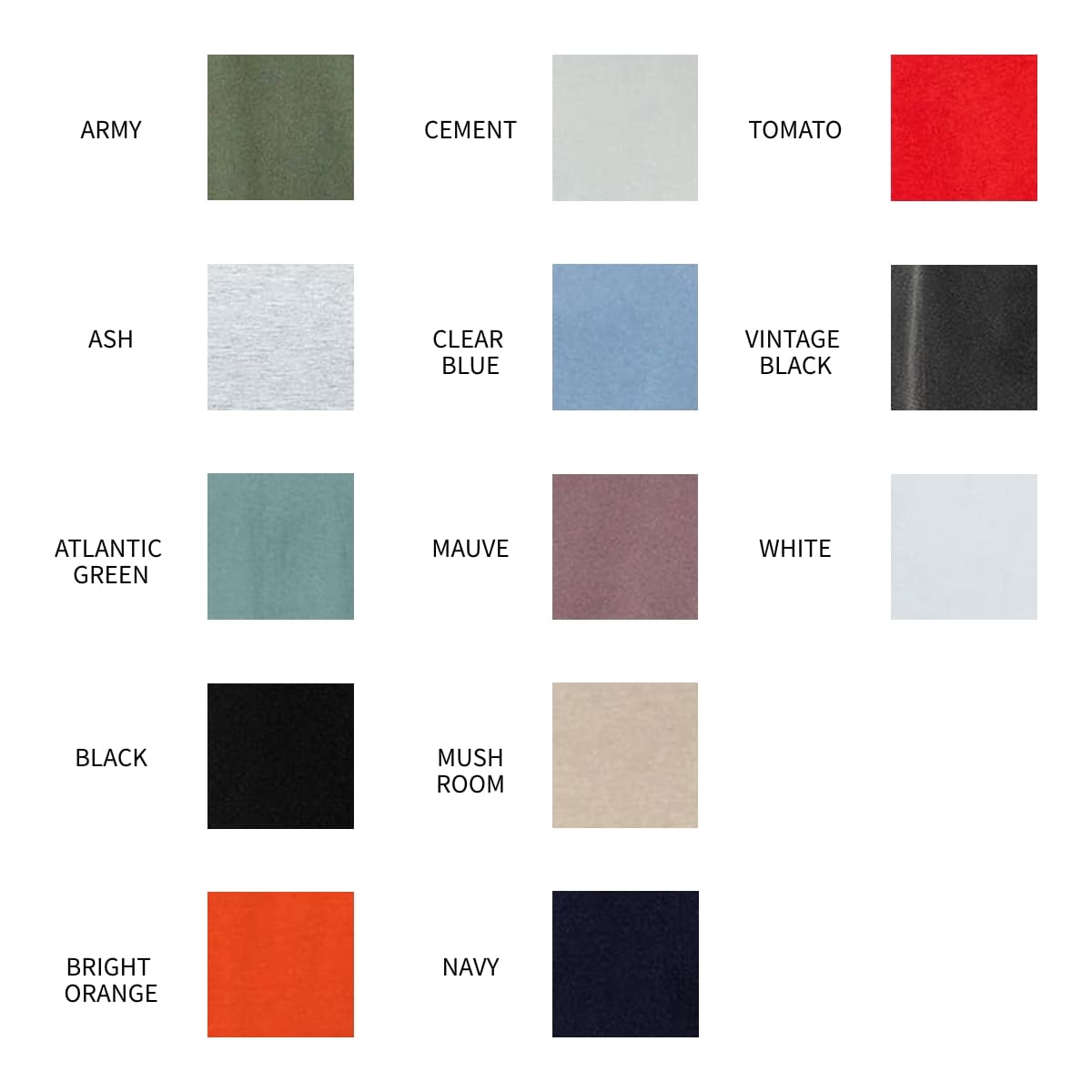 肉厚で耐久性と吸水性に優れ、ガーメントダイ加工により縮みもほとんどありません。天然酵素で洗い加工を施すことで、10年、20年と着古したTシャツのような、着古したような風合いに仕上がっています。重厚でしっかりとした着心地に加え、ゆったりとしたフィット感と高めのネックラインが特徴です。