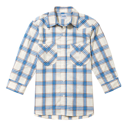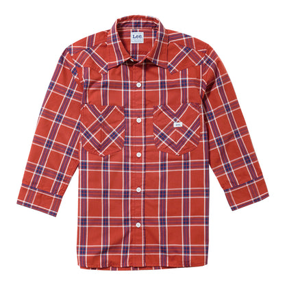 コンパクトなサイズ展開のウエスタンチェック七分袖シャツ。1枚でも羽織りとしても着用が可能で、コーディネイトのアクセントになるアイテム。