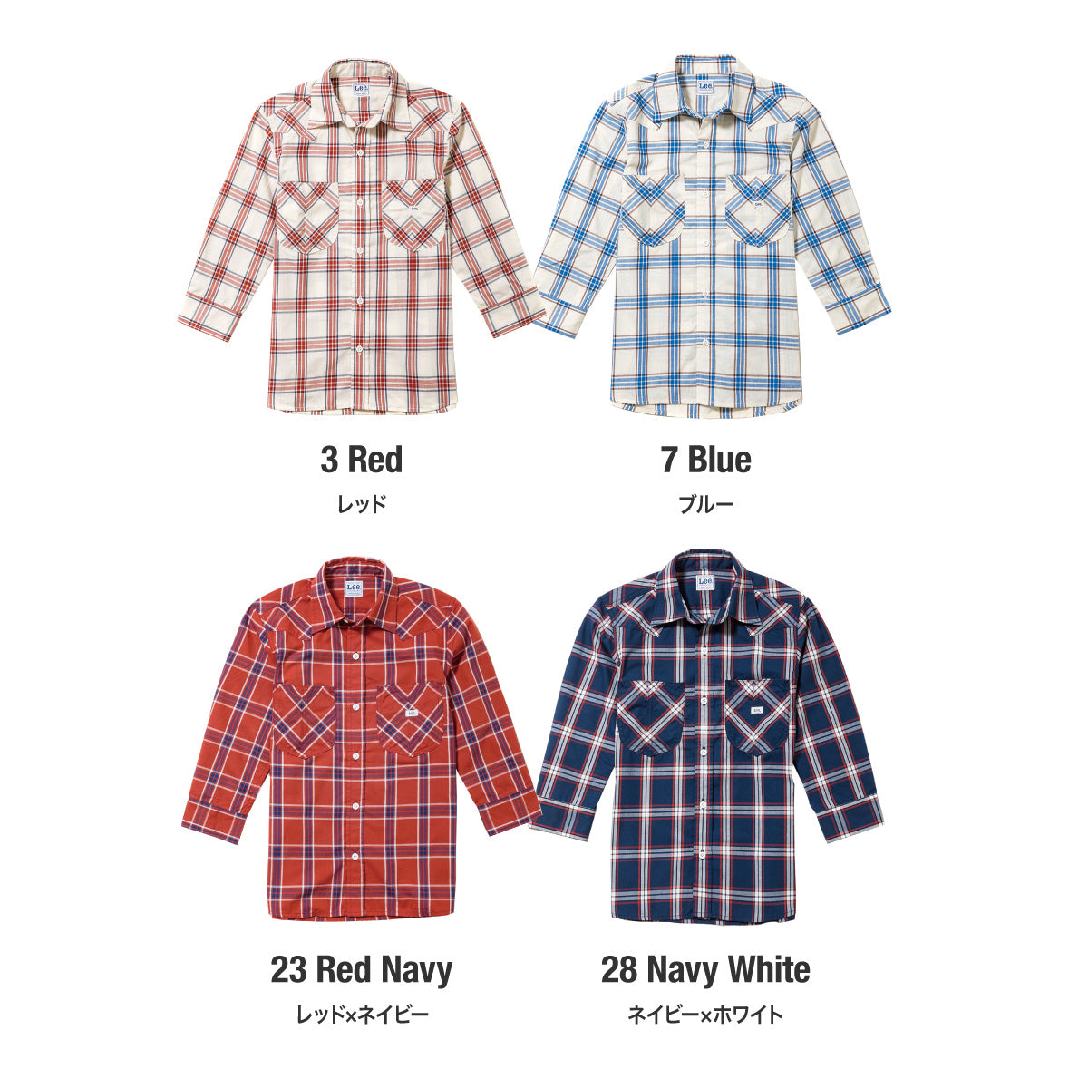 コンパクトなサイズ展開のウエスタンチェック七分袖シャツ。