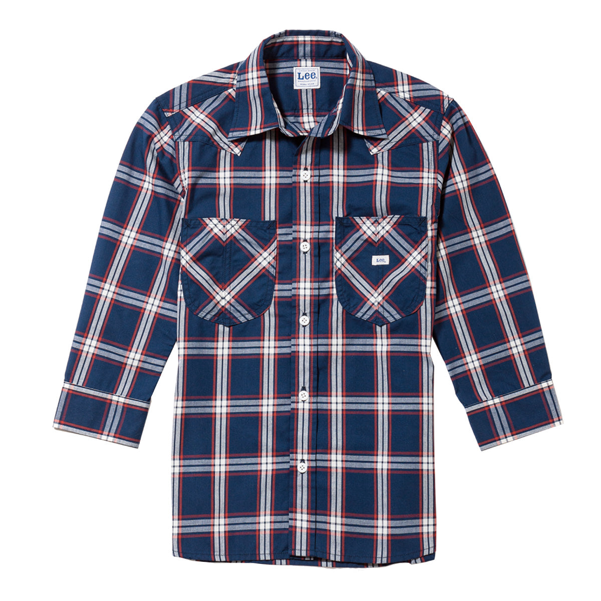 コンパクトなサイズ展開のウエスタンチェック七分袖シャツ。
