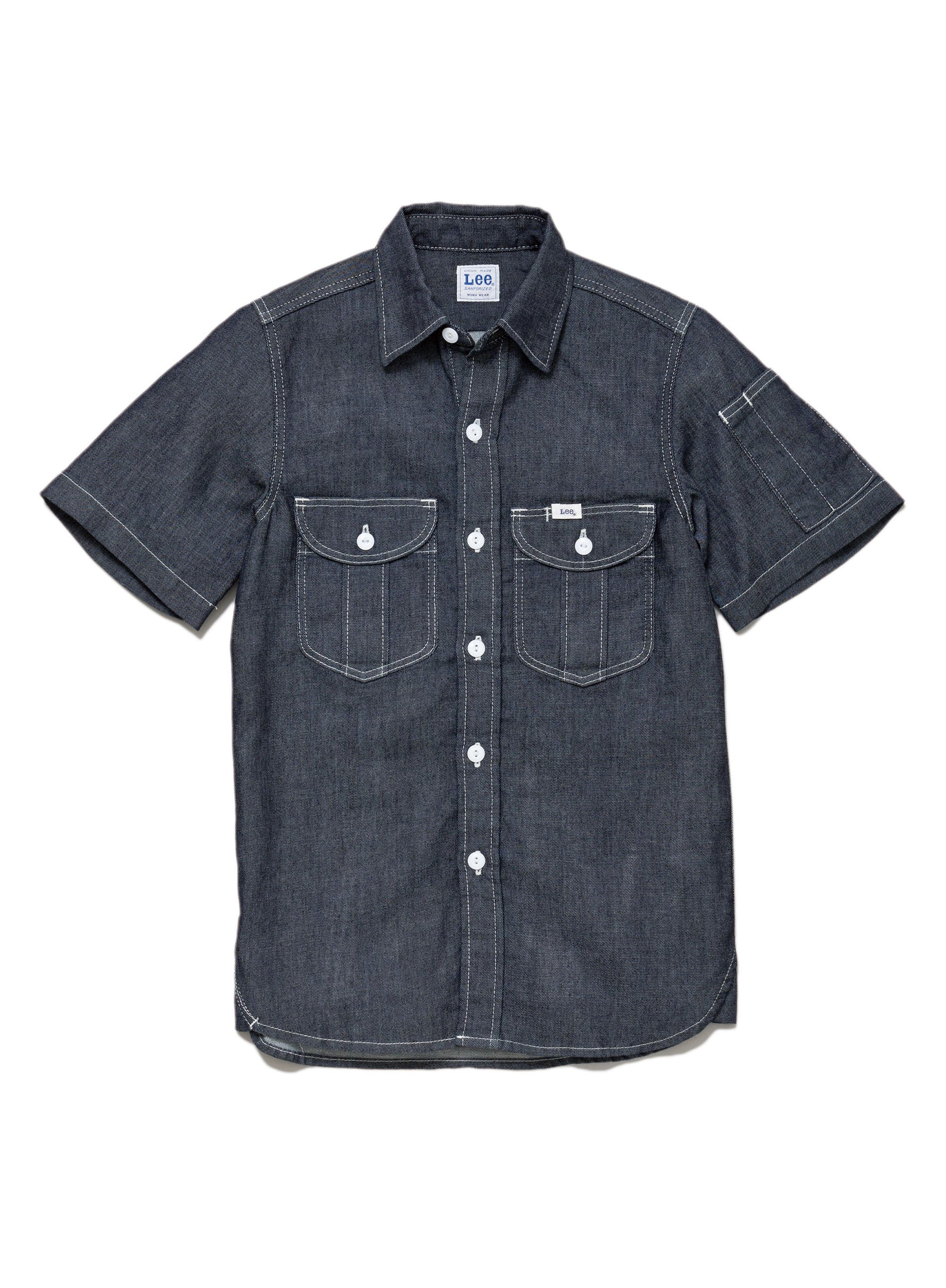 プリーツ入りで立体的な胸ポケットやガゼット、動きやすい様にゆったりとしたシルエットが特徴の半袖ワークシャツ。