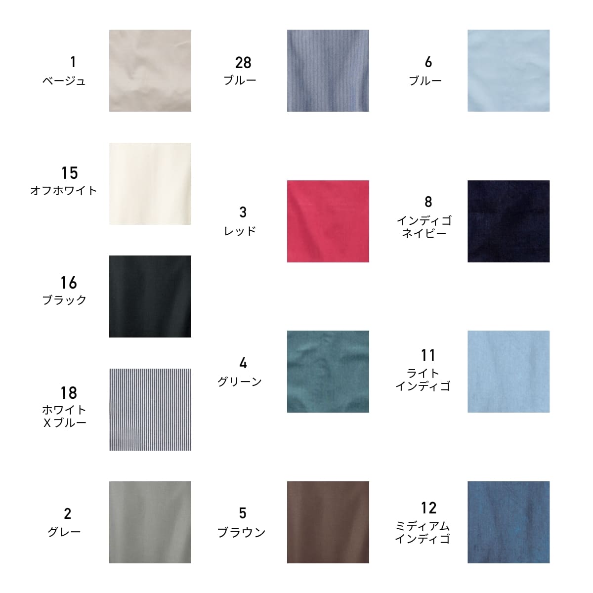 インディゴネイビー・ベージュ・レッド・グリーン・ブルー